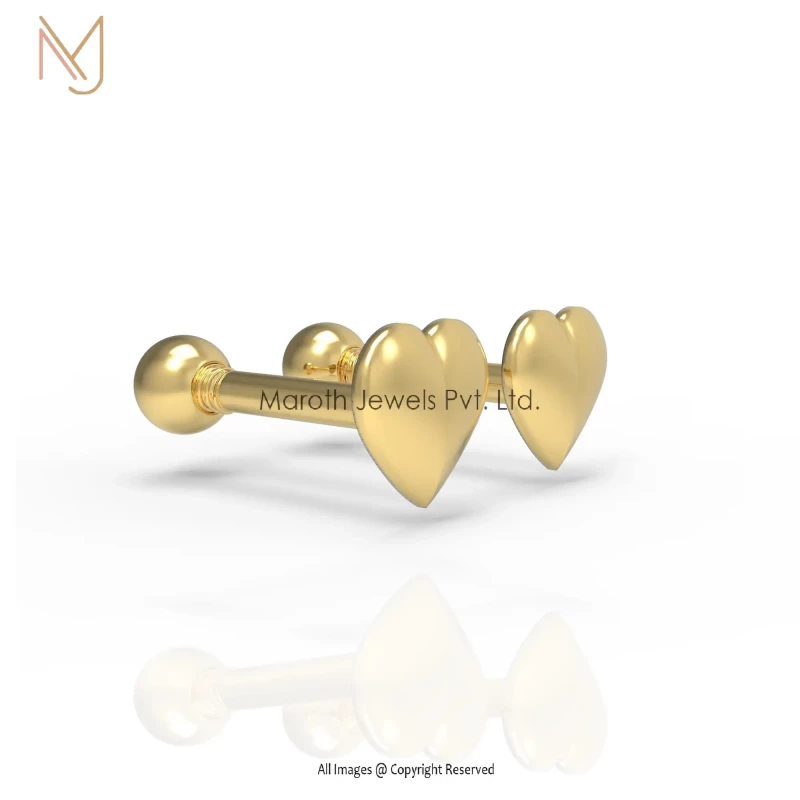 14K Yellow Gold Plated Heart Designs Stud Earrings Jewelry Manufacturer