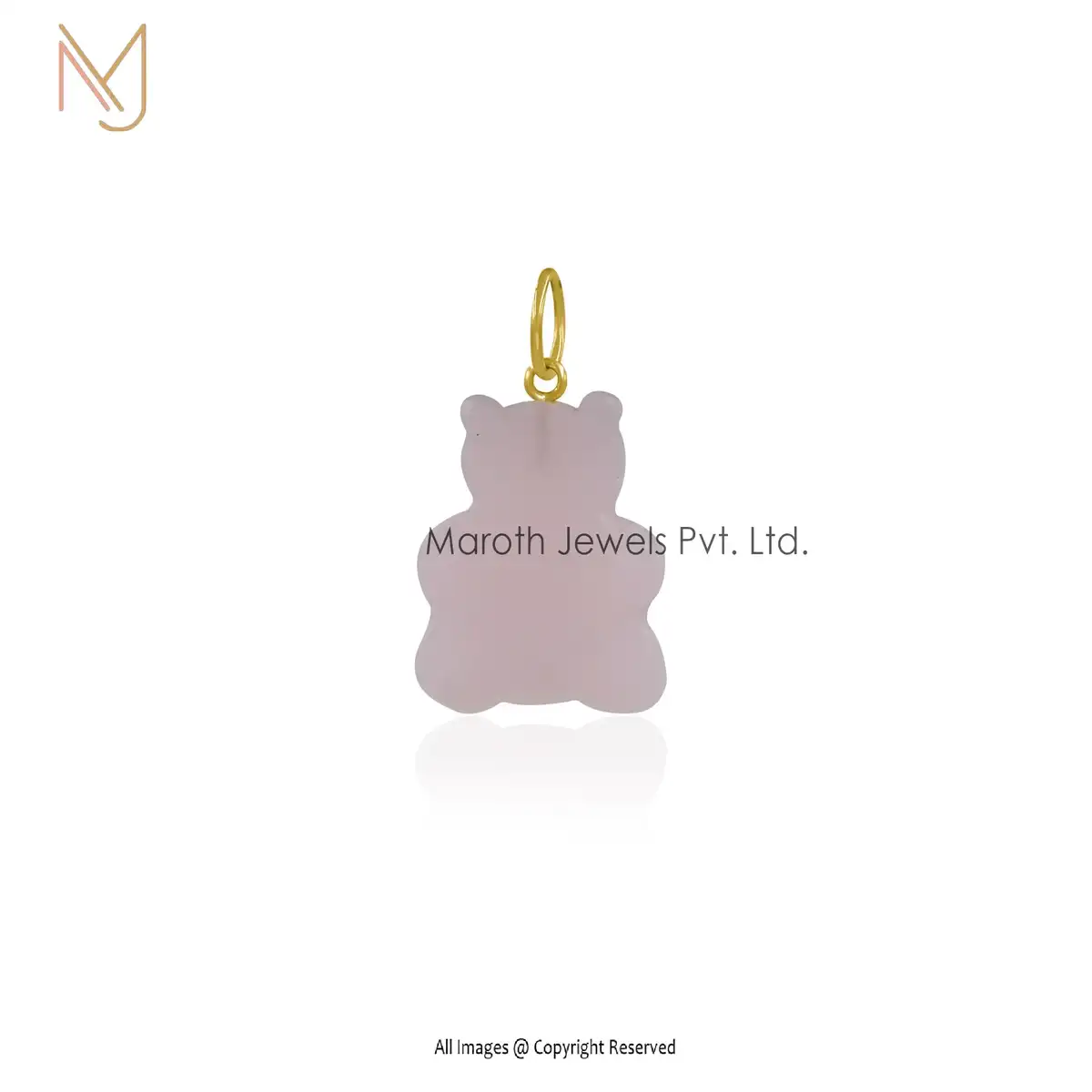 14K Yellow Gold Rose Quartz Gemstone Teddy Bear Pendant Jewelry USA