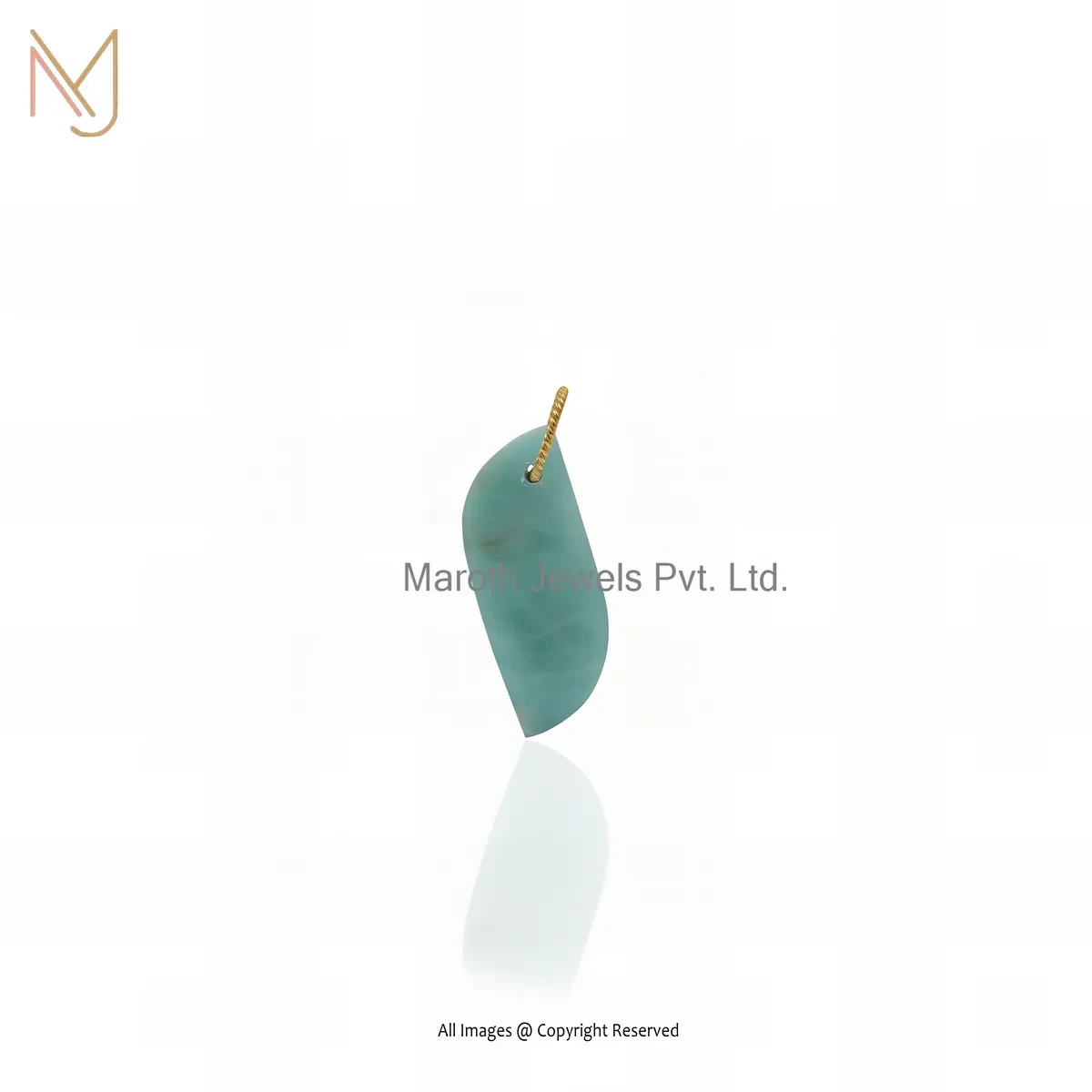 14K Yellow Gold Ruby Cubic Zircon & Amazonite Gemstone Teardrop Pendant USA