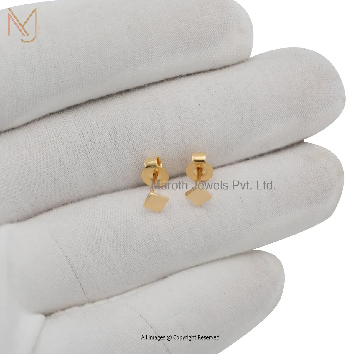 14K Yellow Gold Square Stud Earring Custom Jewelry