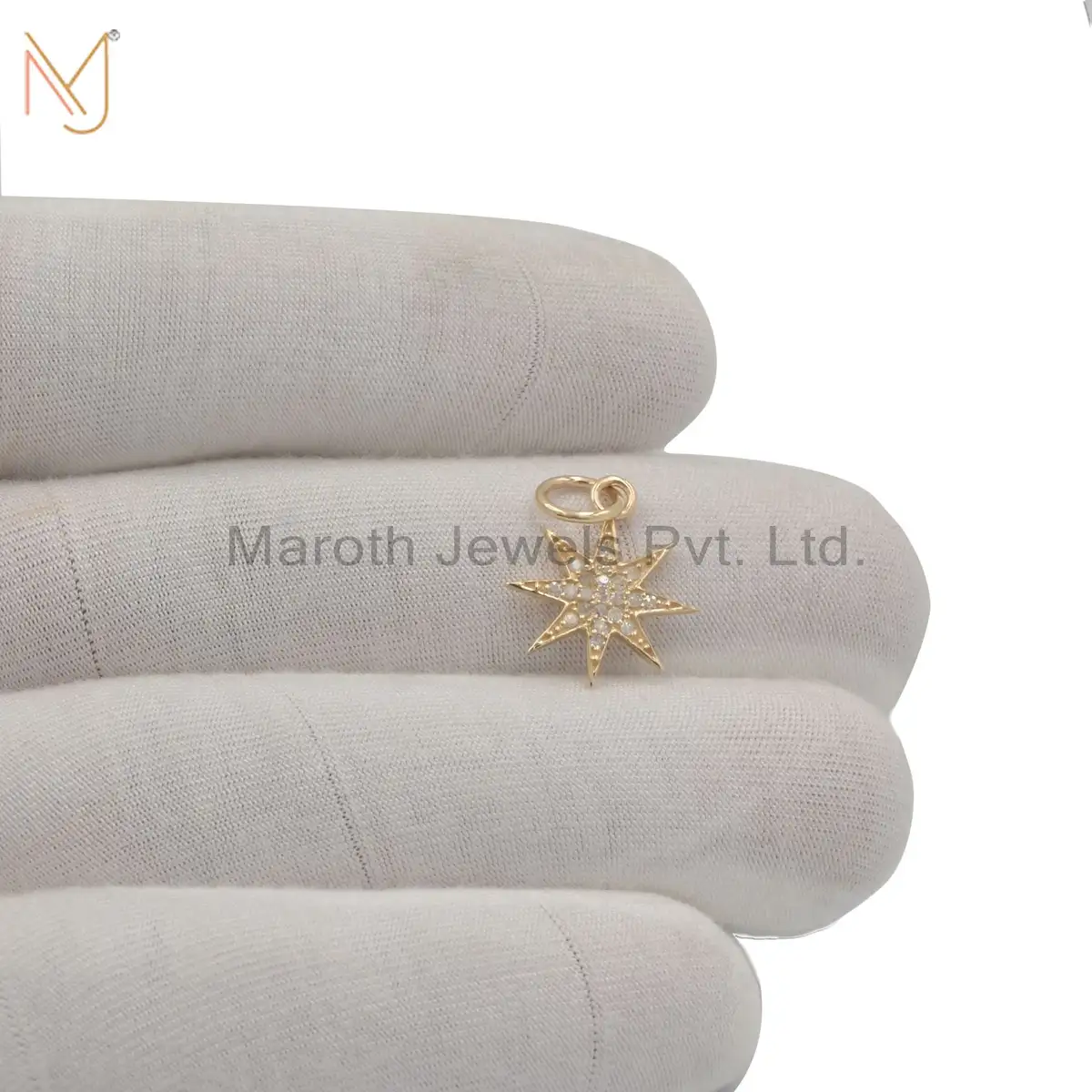 14K Yellow Gold Star Pave Diamond Star Designs Pendant Jewelry Manufacturer