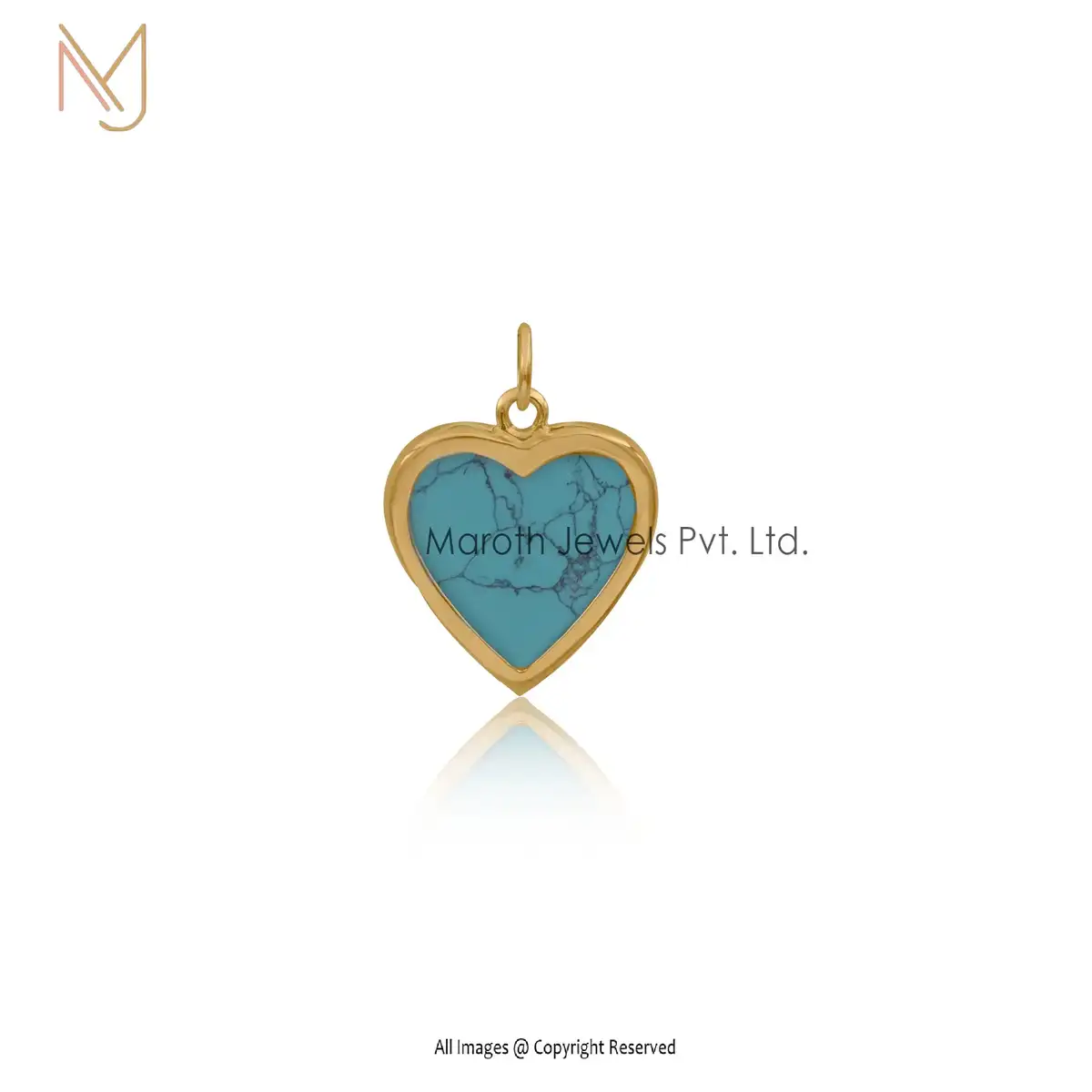 14K Yellow Gold Turquoise Heart Pendant Custom Jewelry