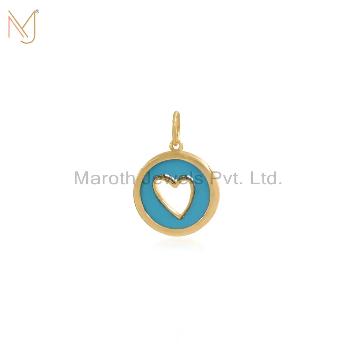 14K Yellow Gold Turquoise Open Heart Disc Pendant Jewelry Supplier
