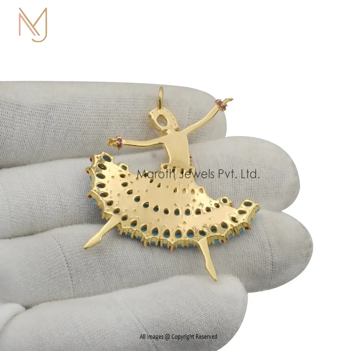 14K Yellow Gold Turquoise Ruby & White Topaz Dance Girl Charm Pendants USA