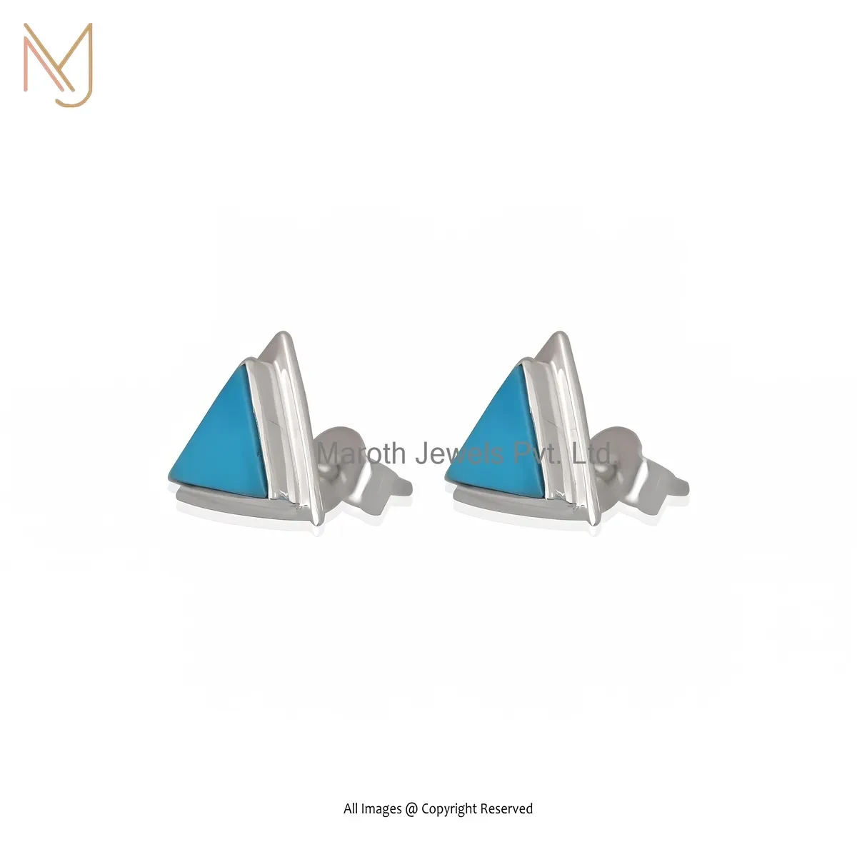 14K Yellow Gold Turquoise Triangle Stud Earring Manufacturer
