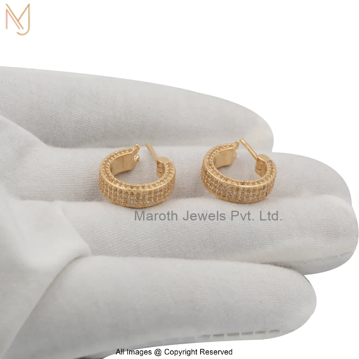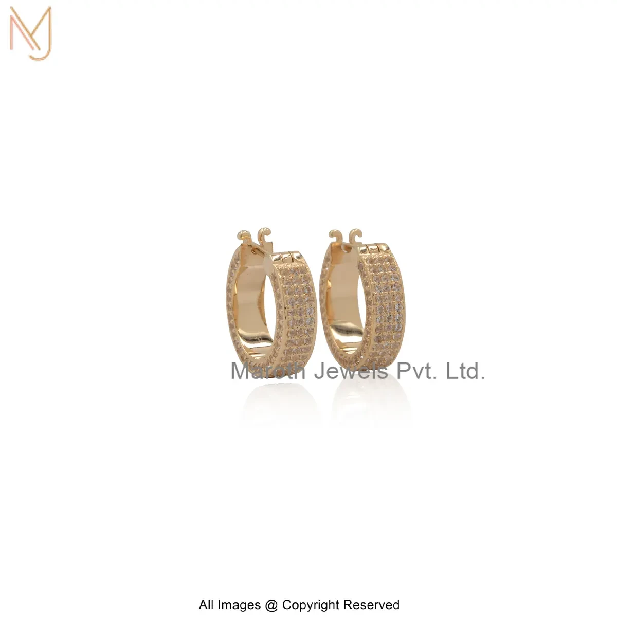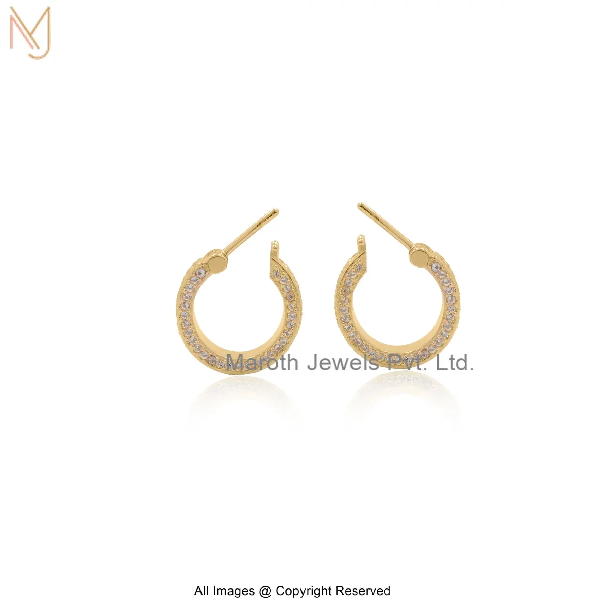 14K Yellow Gold White Topaz Huggies Hoop Earring Custom Jewelry