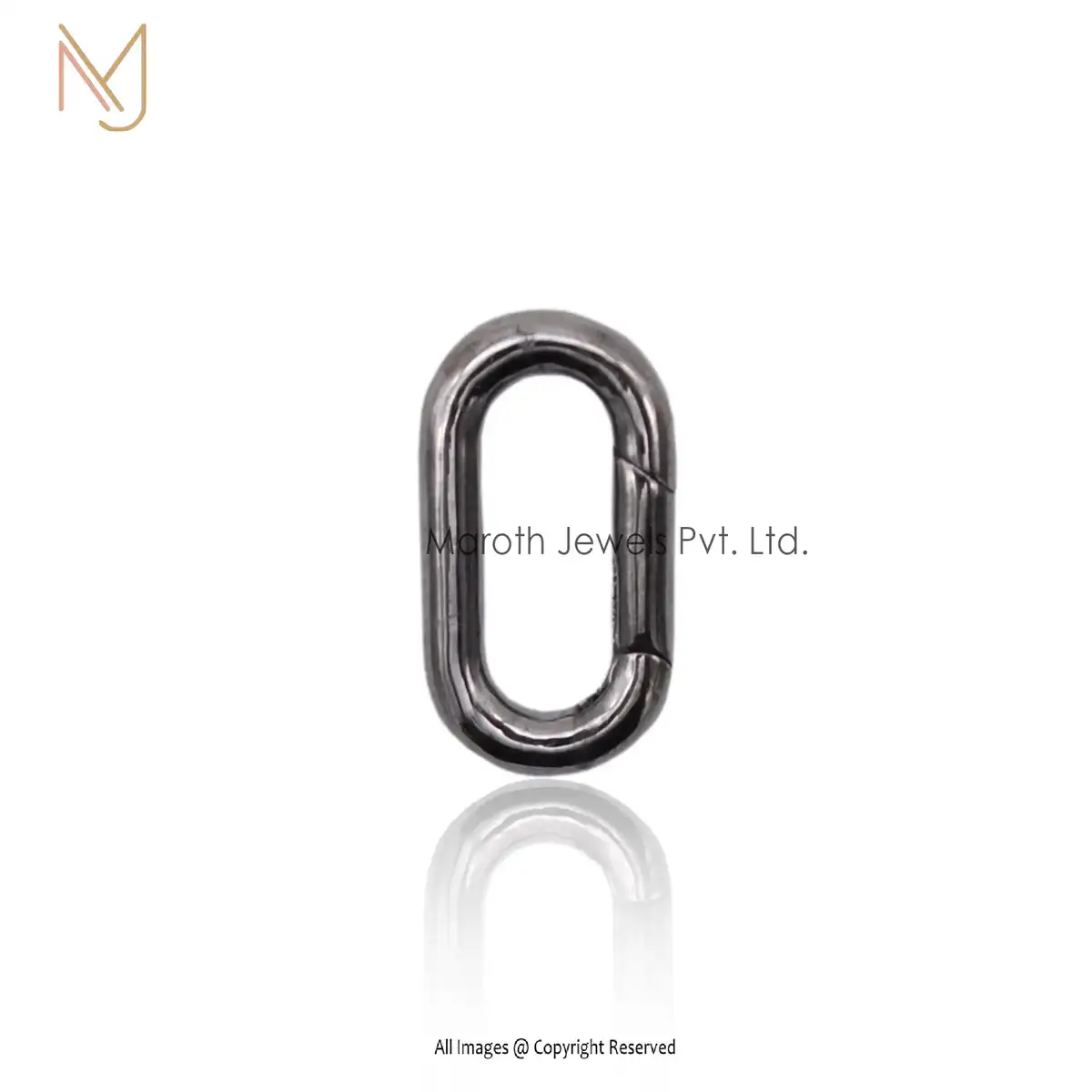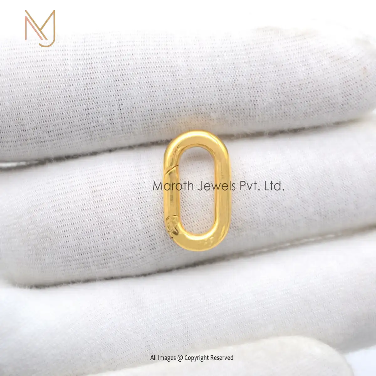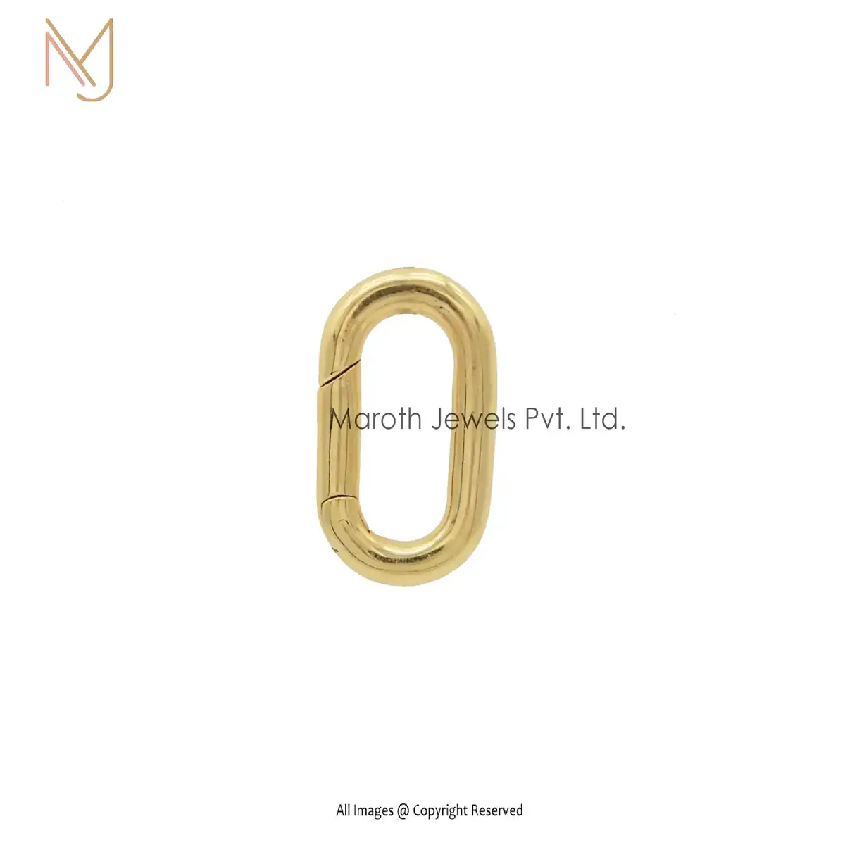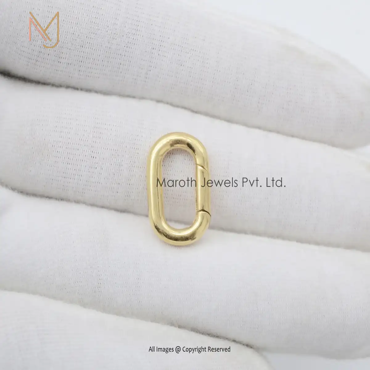 18k Solid Gold Push Lock Oval Charm Enhancer Jewelry
