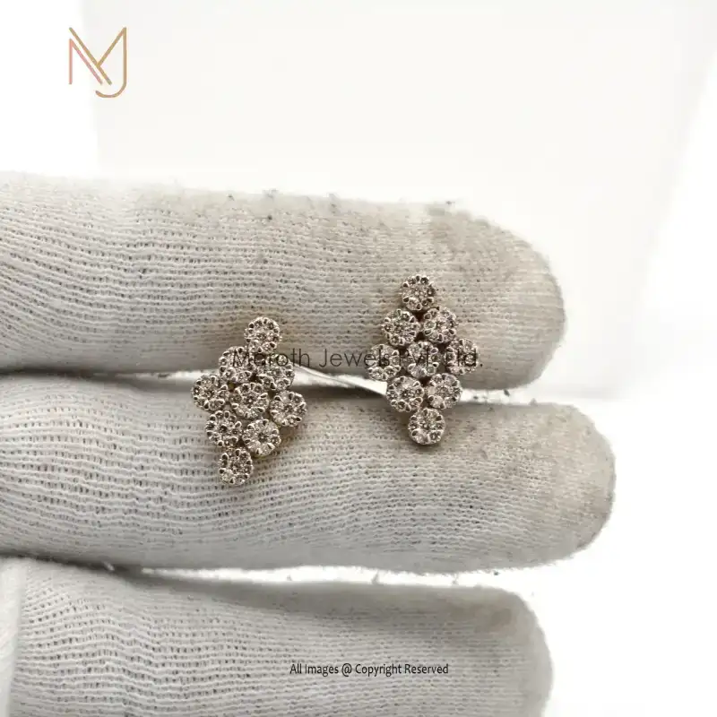 925 Natural Silver Yellow Gold Plated Pave Diamond Studs Earrings Jewelry Manufacturer