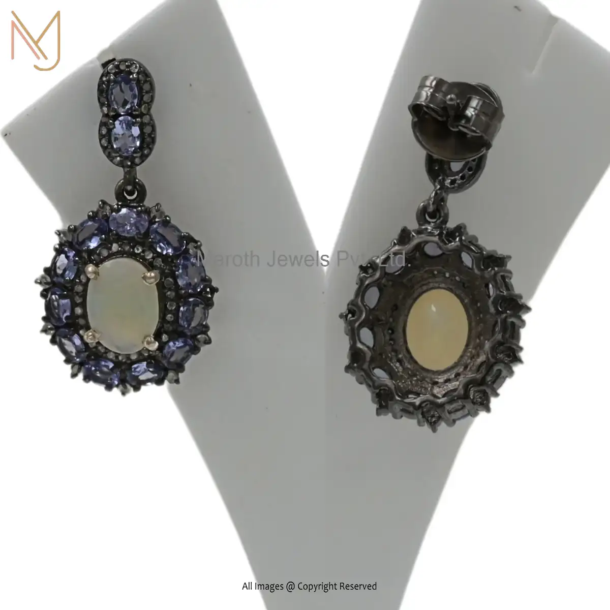 925 Silver Black Rhodium Opal And Emerald Diamond Earring Set Manufacturer