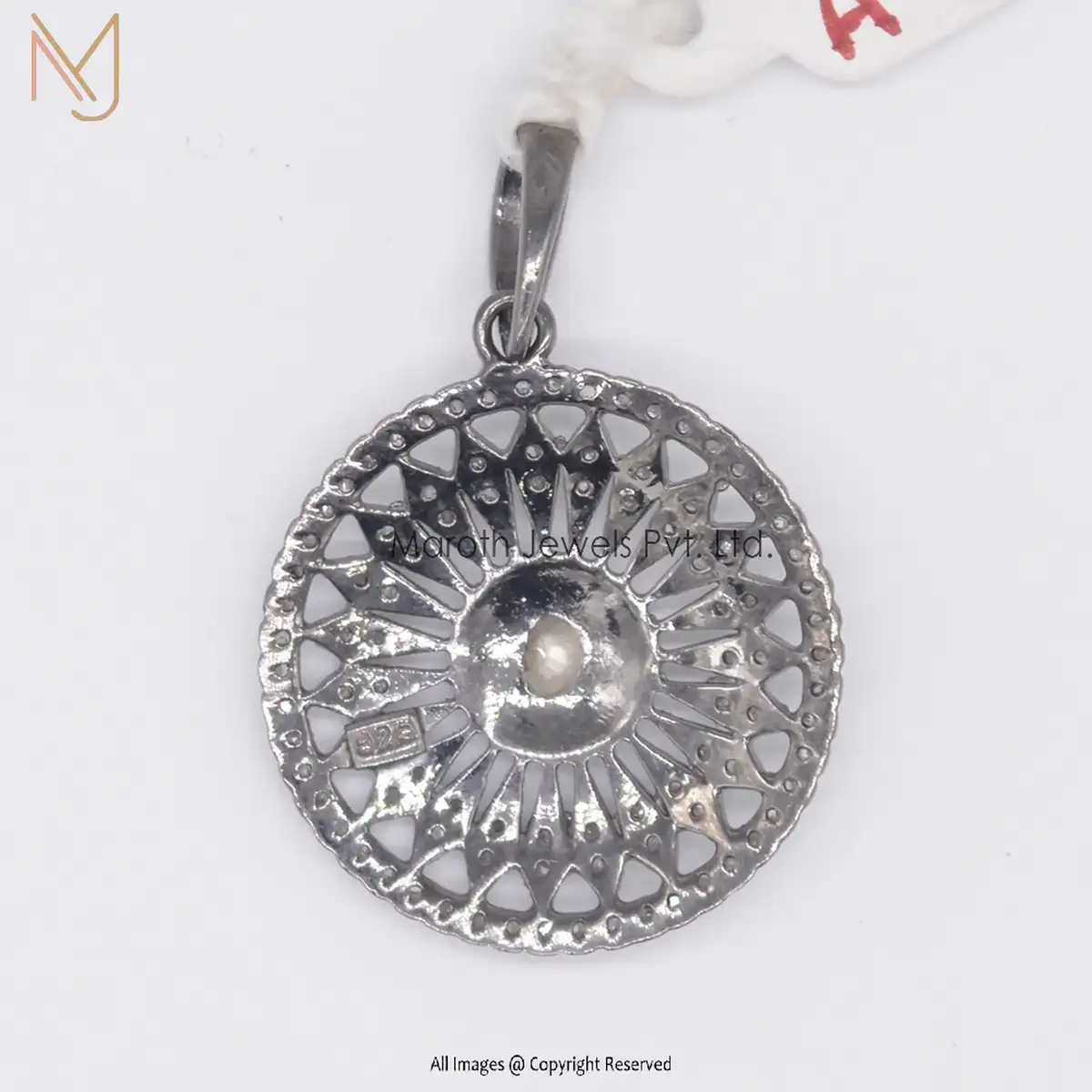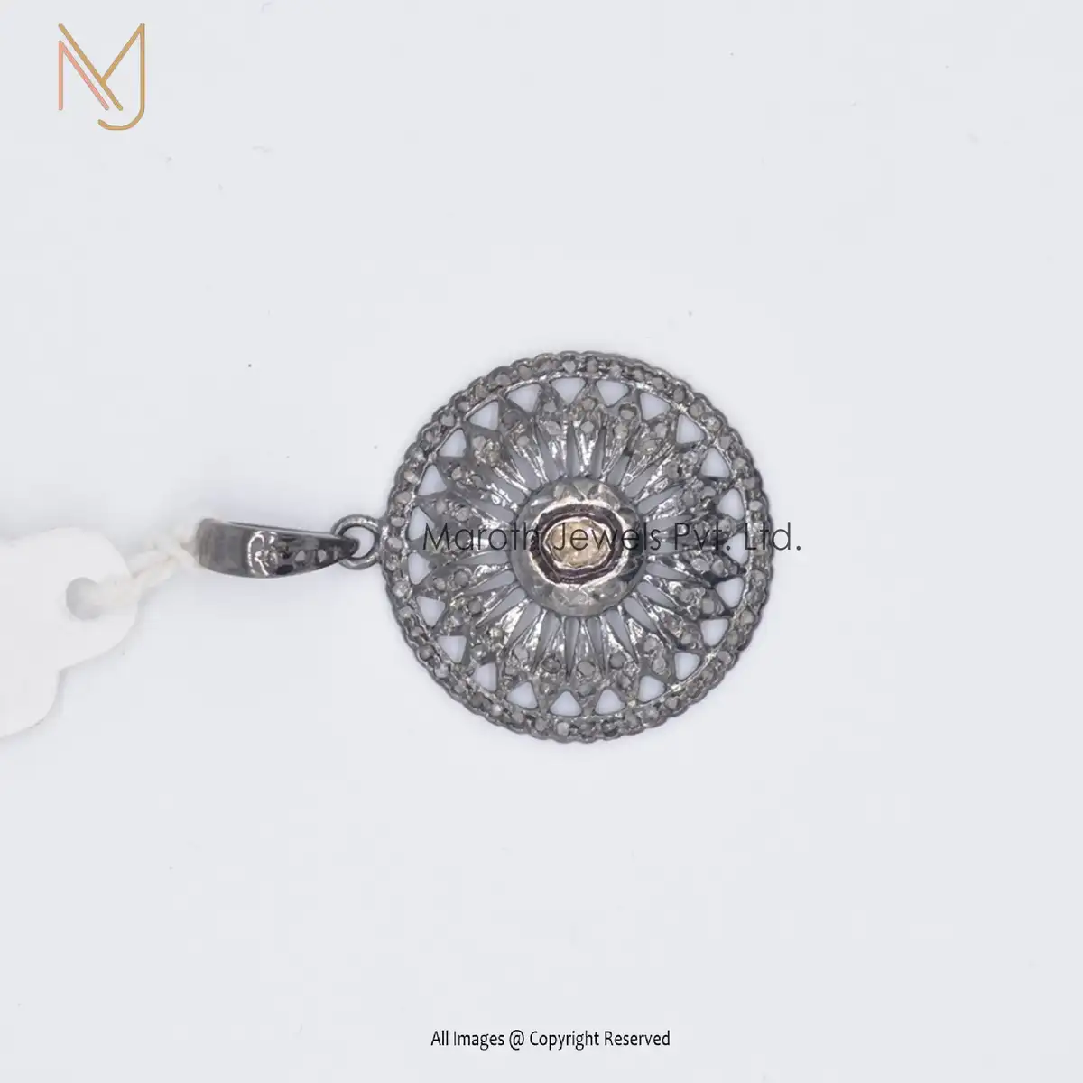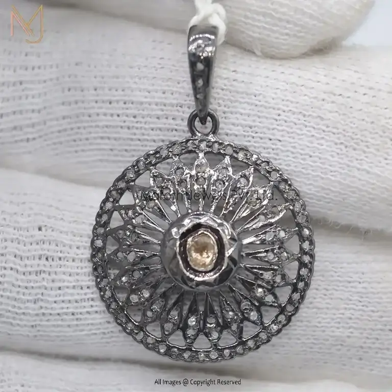 925 Silver Black Rhodium Pave Diamond Rose Cut Round Chakra Pendant Manufacturer