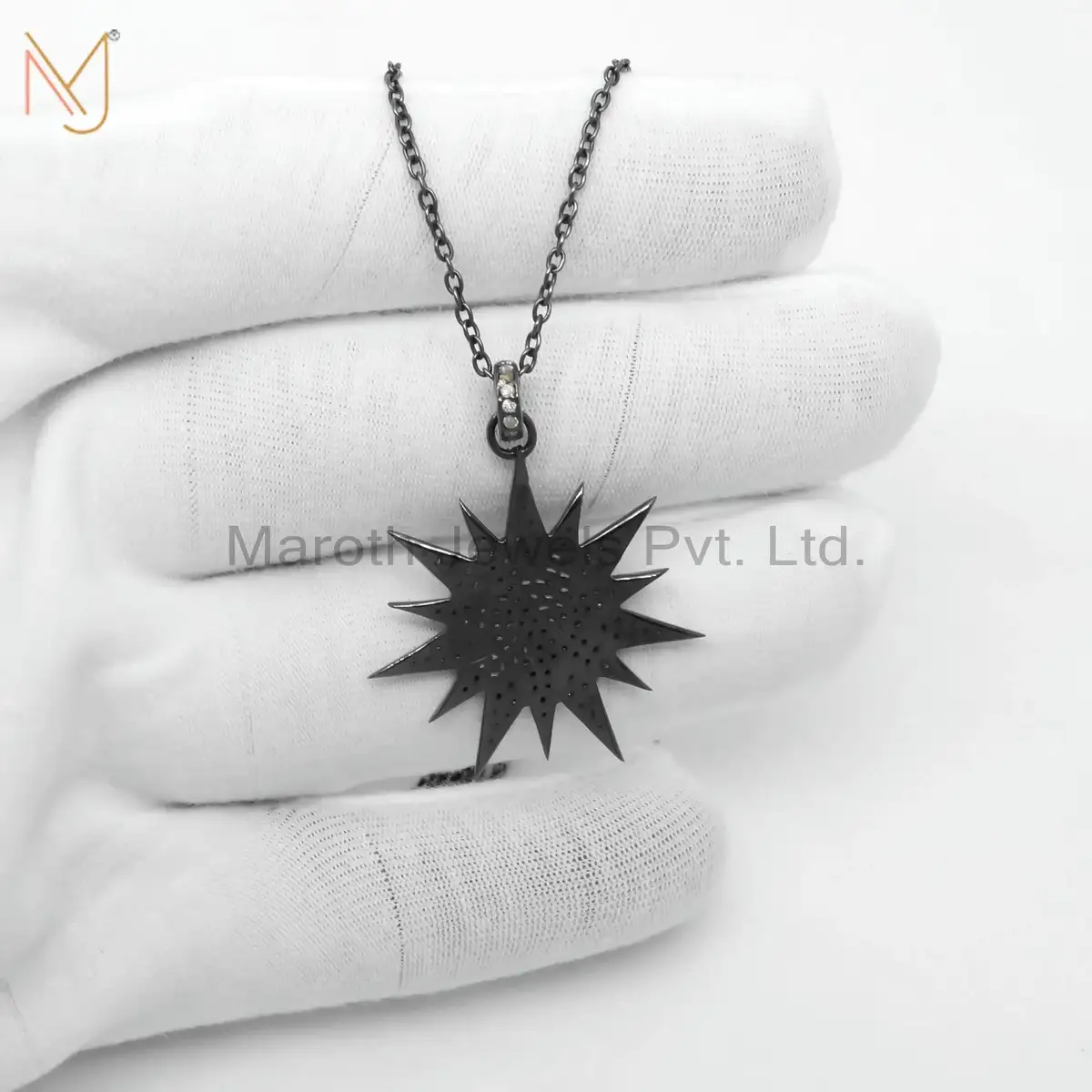 925 Silver Black Rhodium Pave Diamond Starburst Pendant Jewelry USA