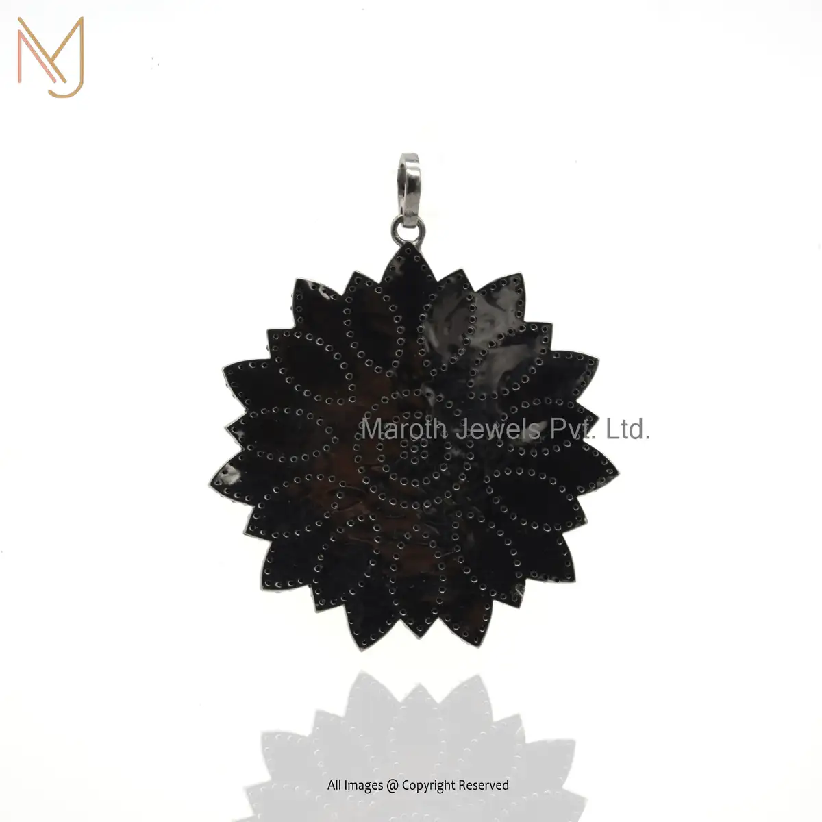 925 Silver Black Rhodium Plated Black Pave Diamond Flower Pendant Jewelry Supplier