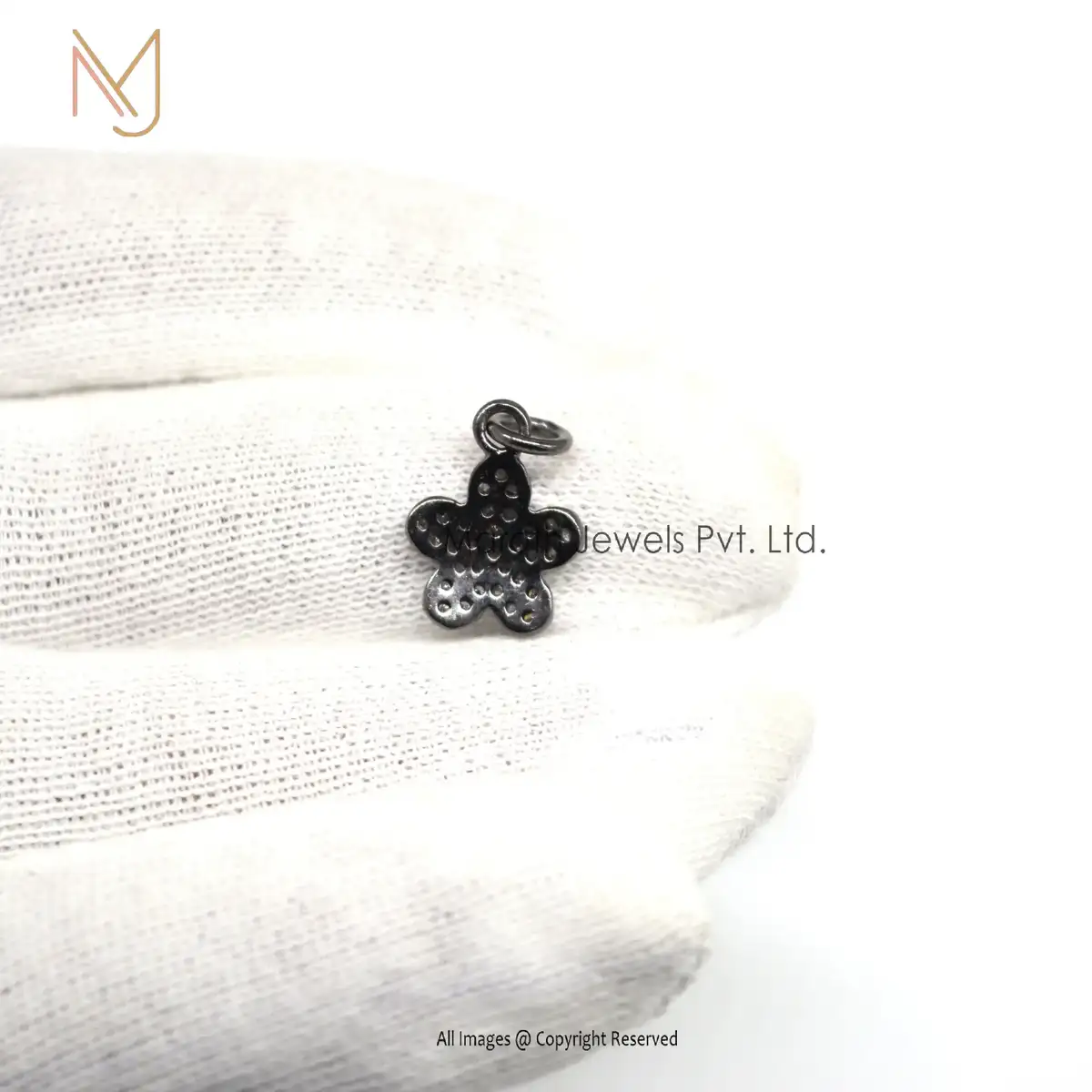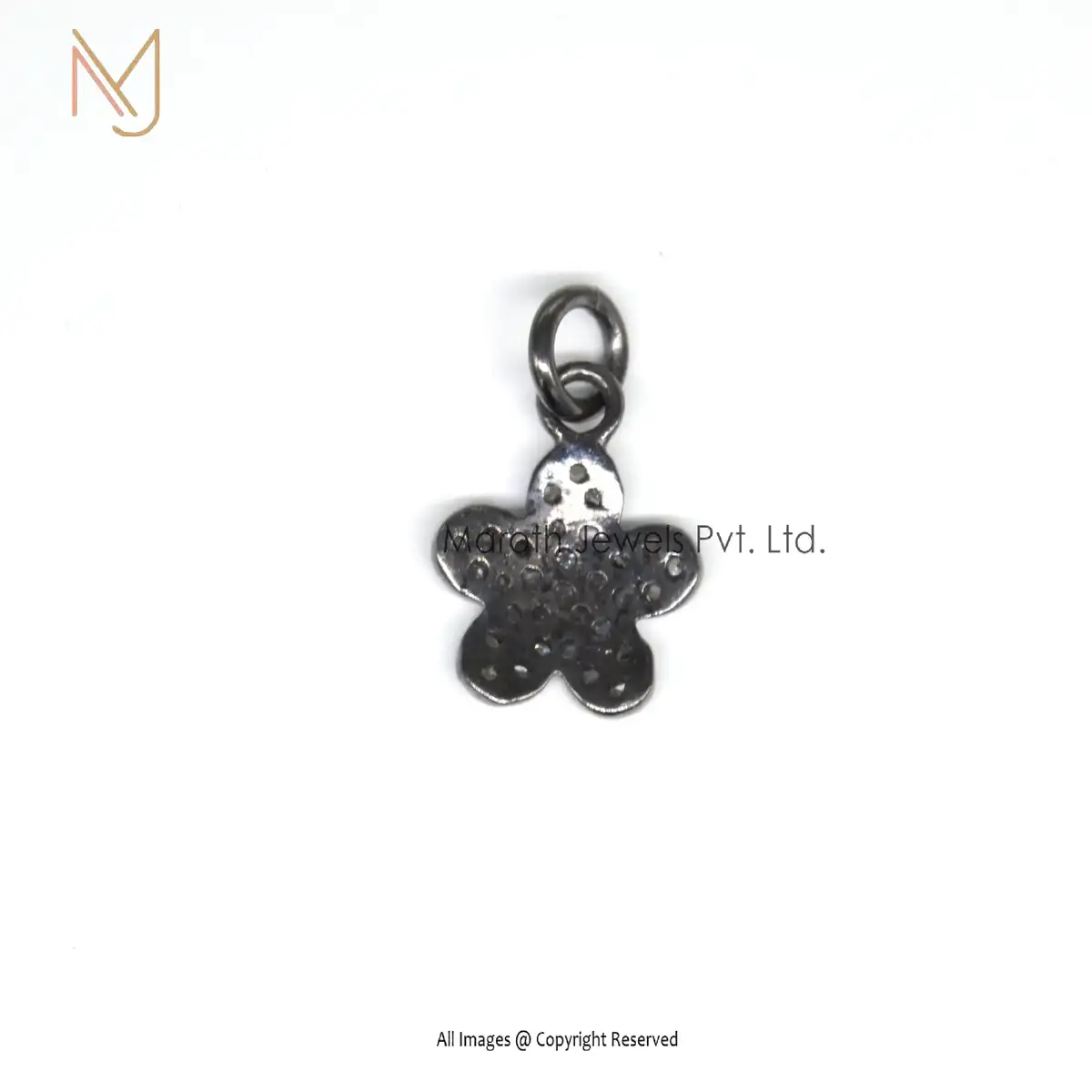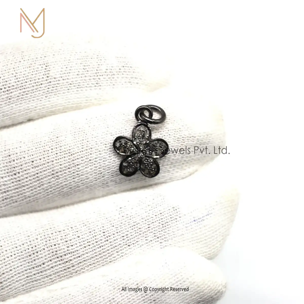 925 Silver Black Rhodium Plated Pave Diamond Charm Flower Pendants Custom Jewelry