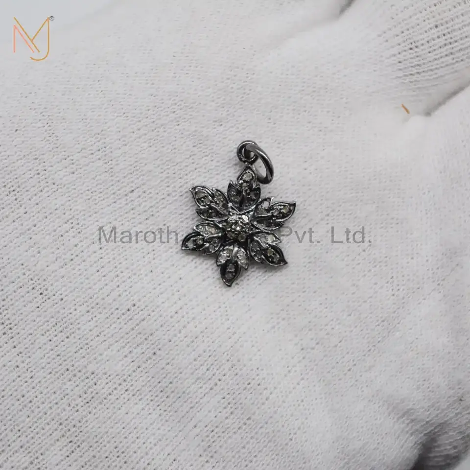 925 Silver Black Rhodium Plated Pave Diamond Flower Designs Pendant Custom Jewelry