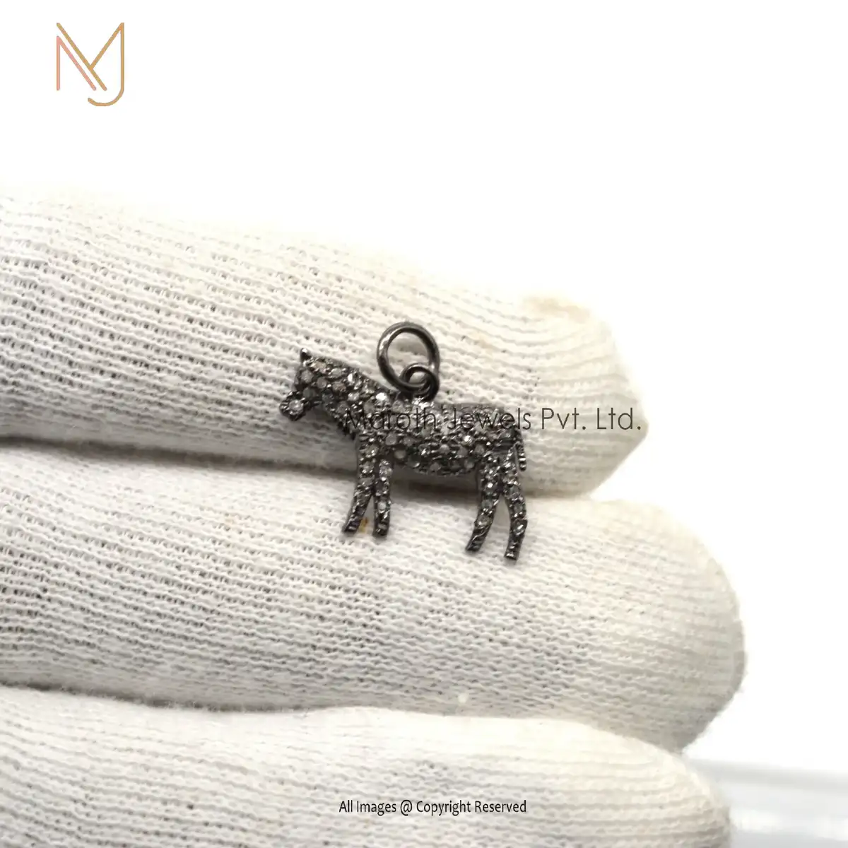 925 Silver Black Rhodium Plated Pave Diamond Horse Pendant Custom Jewelry