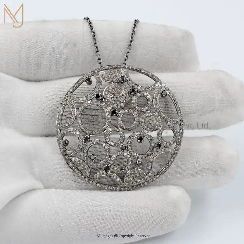 925 Silver Black Rhodium Plated Pave Diamond Round Circle Pendant Jewelry USA