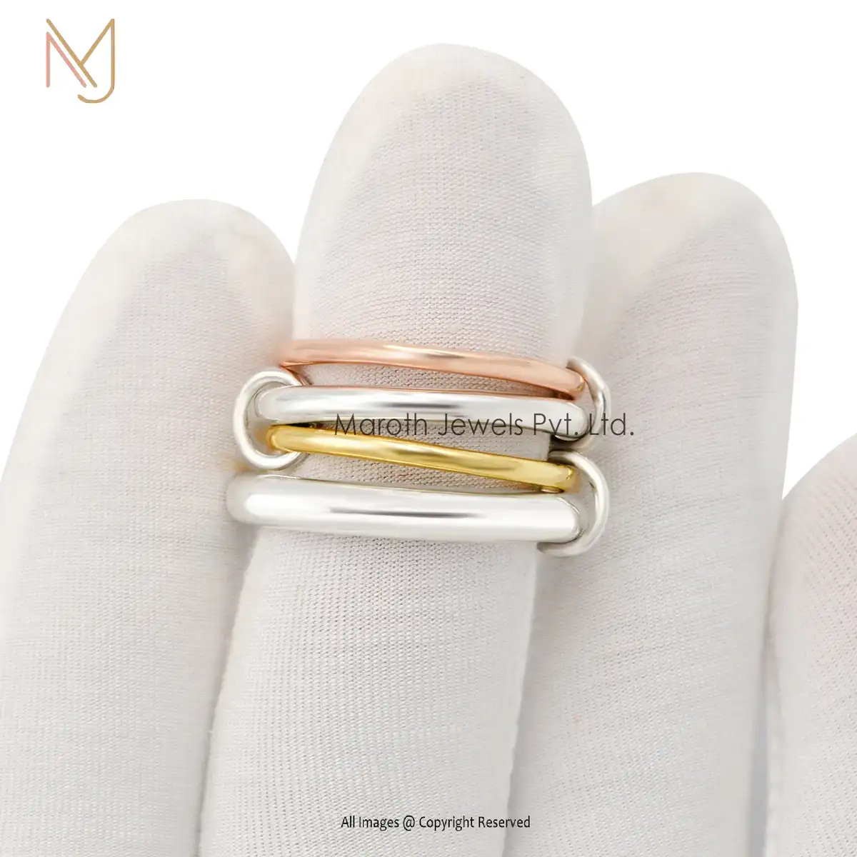 925 Natural Silver rose gold & yellow Gold Plated Plain Connected Rings Manufacturer