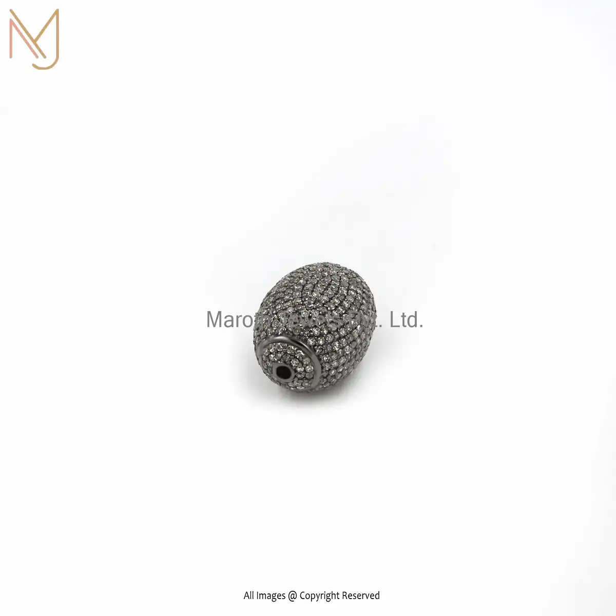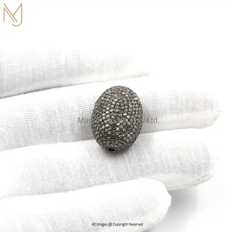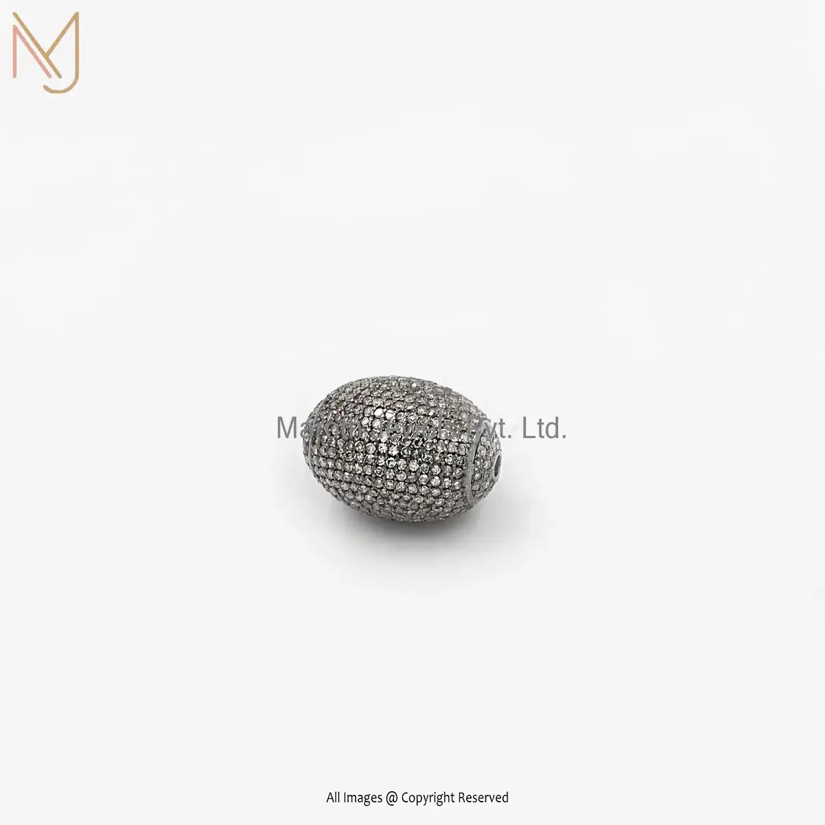 925 Silver Gray Rhodium Plated Pave Diamond Beads Finding Custom Jewelry