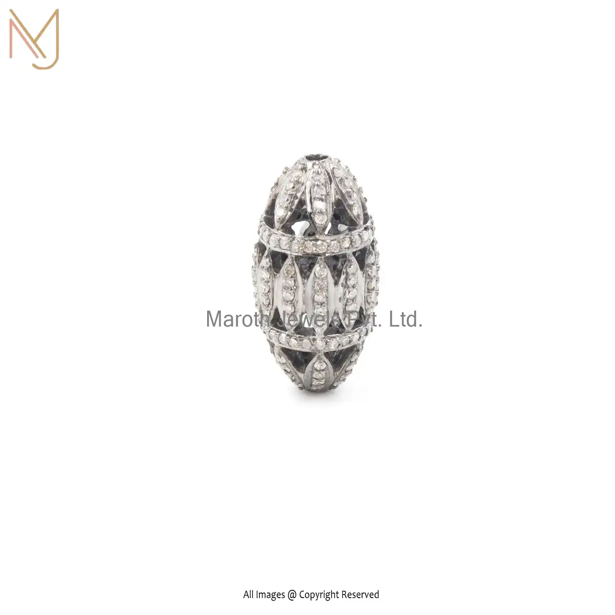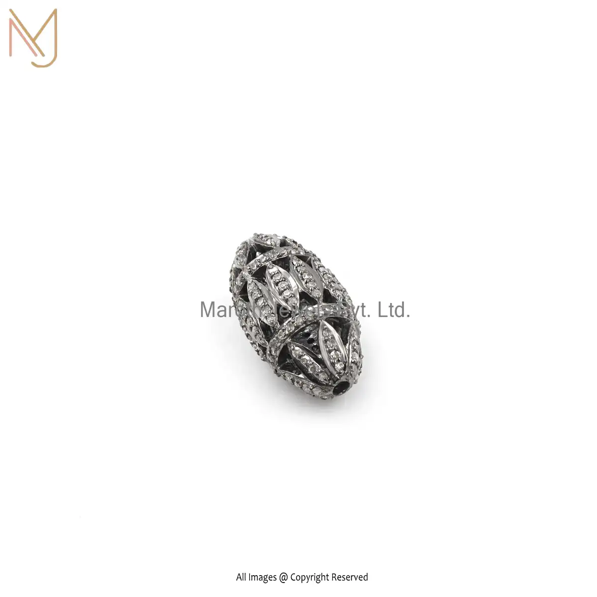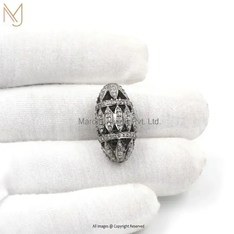 925 Silver Gray Rhodium Plated Pave Diamond Beads Finding Jewelry Supplier