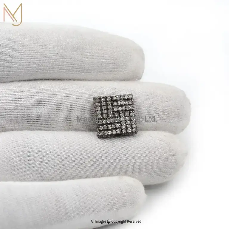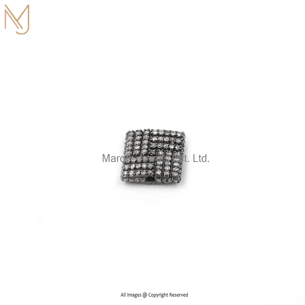 925 Silver Gray Rhodium Plated Pave Diamond Square Beads Finding Jewelry USA