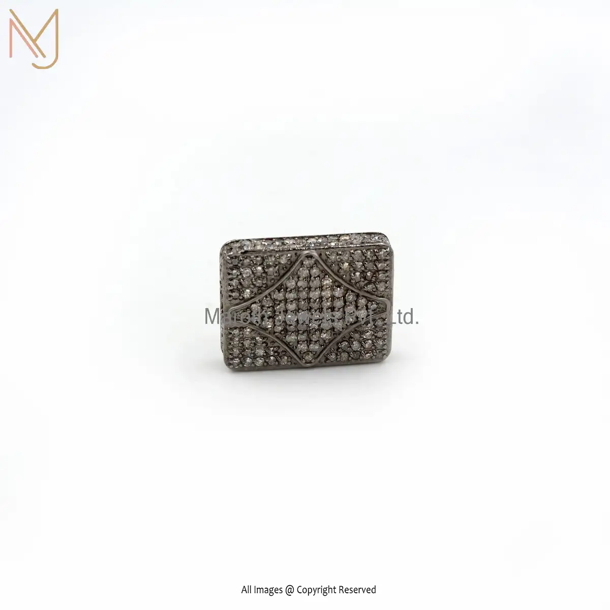 925 Silver Gray Rhodium Plated Rectangle Pave Diamond Beads Finding Jewelry Manufacturer