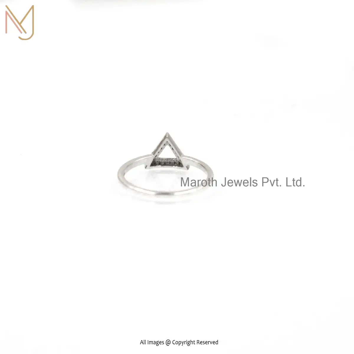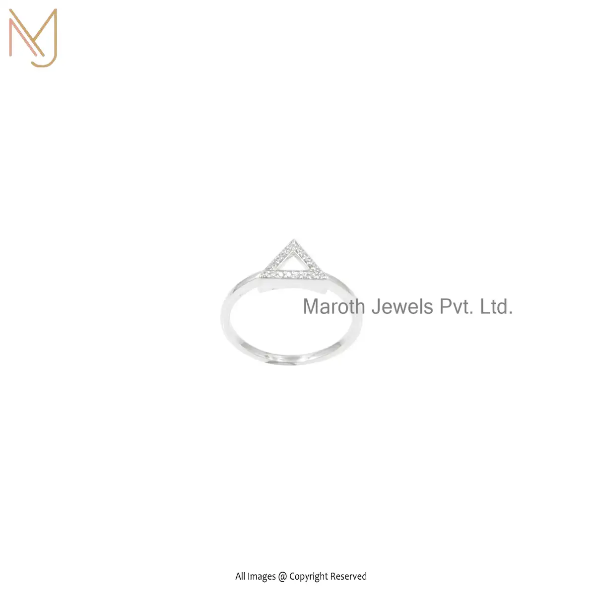 925 Silver Natural Silver Pave Diamond Open Triangle Ring Manufacturer