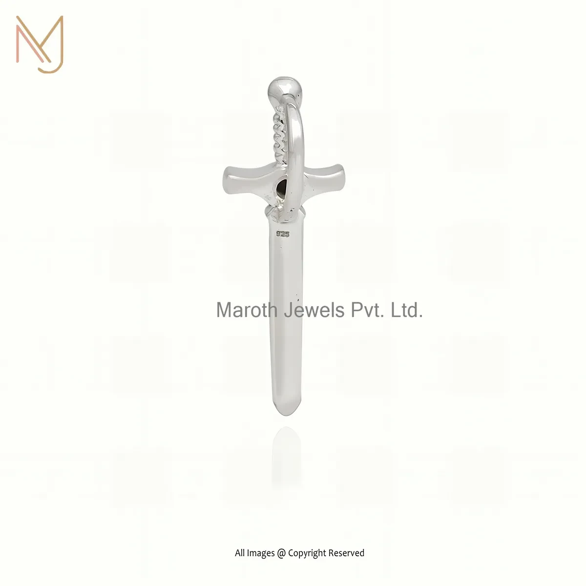 925 Silver Natural Silver Plated Black Cubic Zircon & Black Enamel Sward Pendant USA