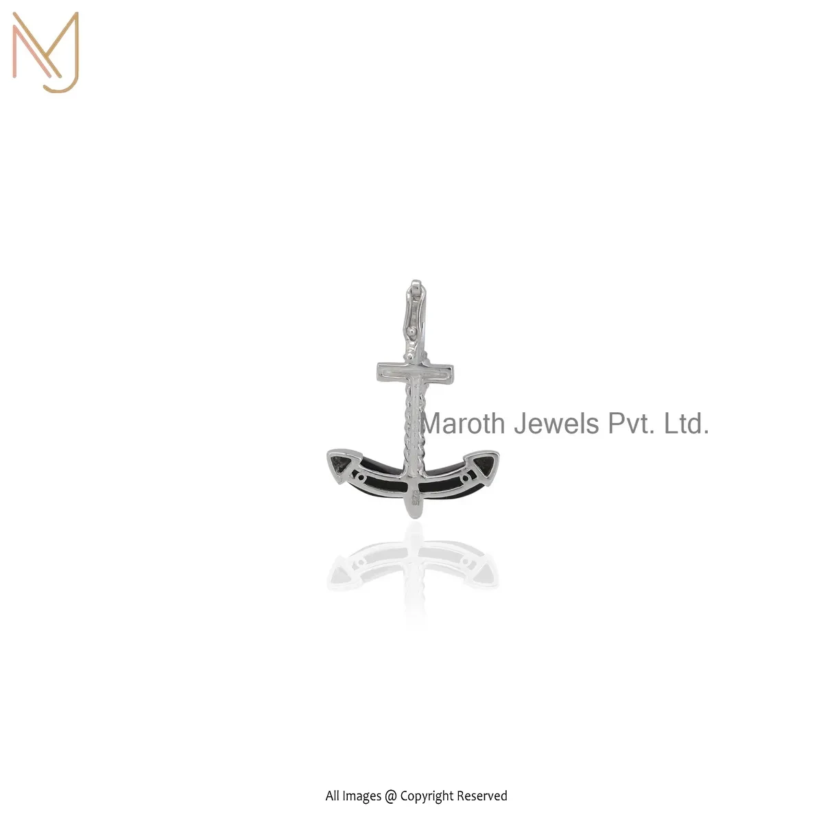 925 Silver Natural Silver Plated Black Onyx Gemstone Anchor Pendant Jewelry Supplier