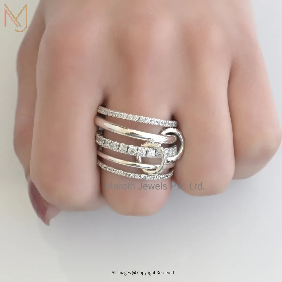 925 Silver Natural Silver Plated Cubic Zircon Connector Band Ring Manufacturer