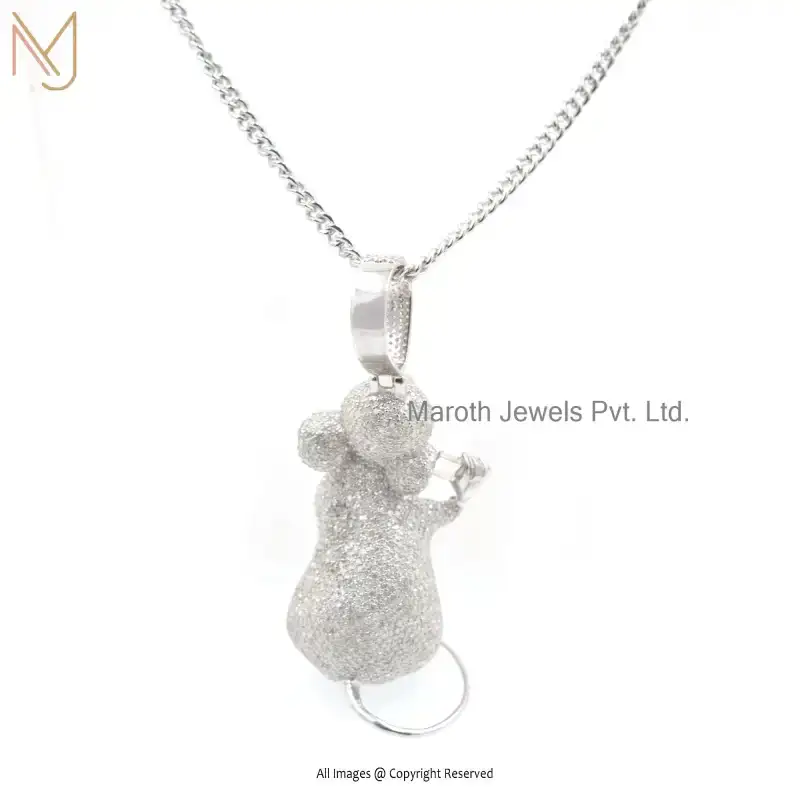 925 Silver Natural Silver Plated Diamond Gemstone Mouse Charm Pendant Jewelry Supplier