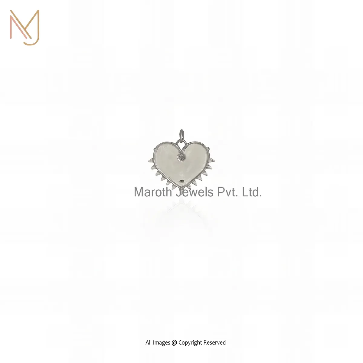 925 Silver Natural Silver Plated Moissanite Fluted Heart Charm Pendant Custom Jewelry