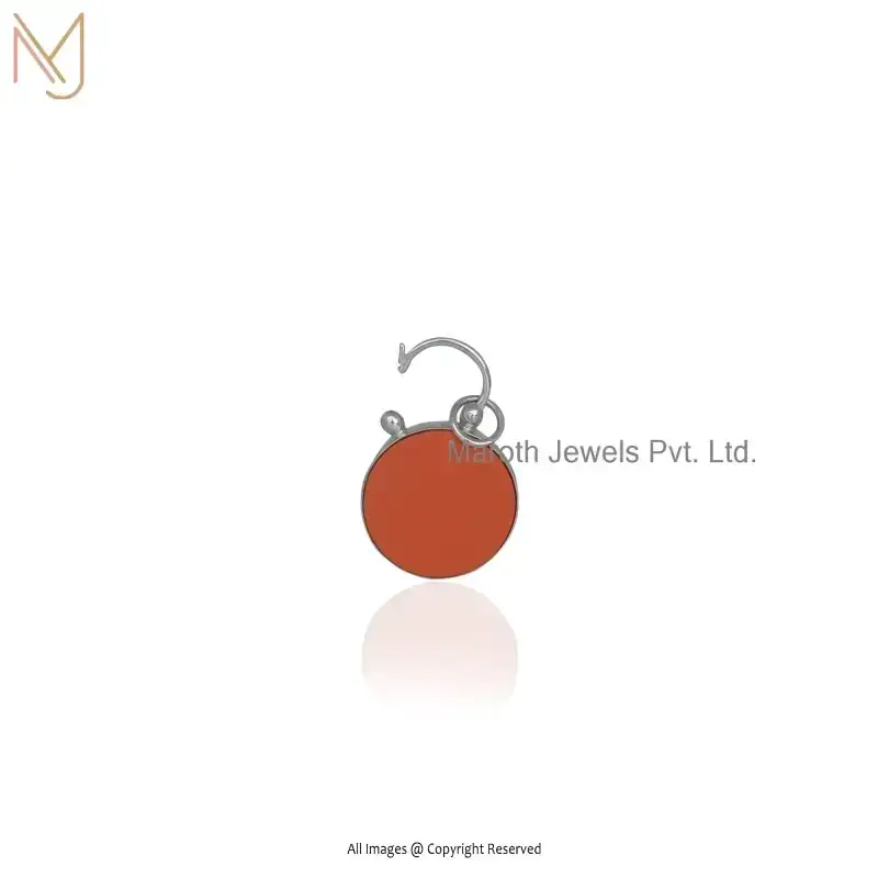 925 Silver Natural Silver Plated Orange Coral & Black Onyx Butterfly Padlock Pendant Jewelry Supplier