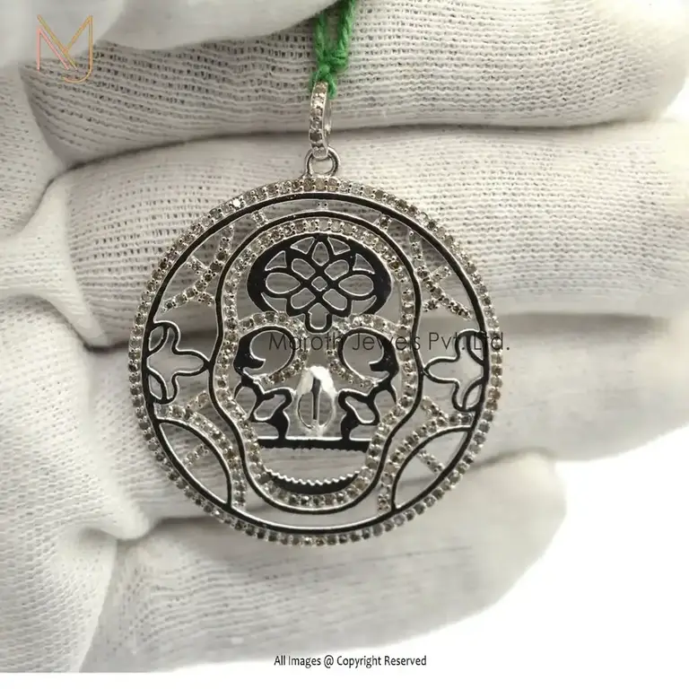 925 Silver Natural Silver Plated Pave Diamond Skull Pendant Jewelry Manufacturer