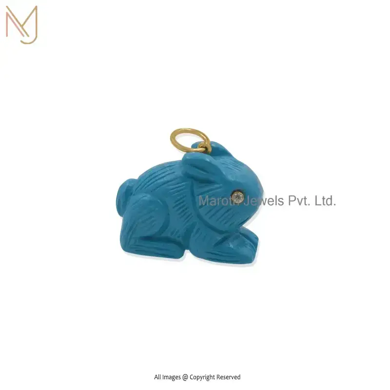 925 Silver Natural Silver Plated Rose Quartz & Cubic Zircon Gemstone Carved Rabbit Pendant USA
