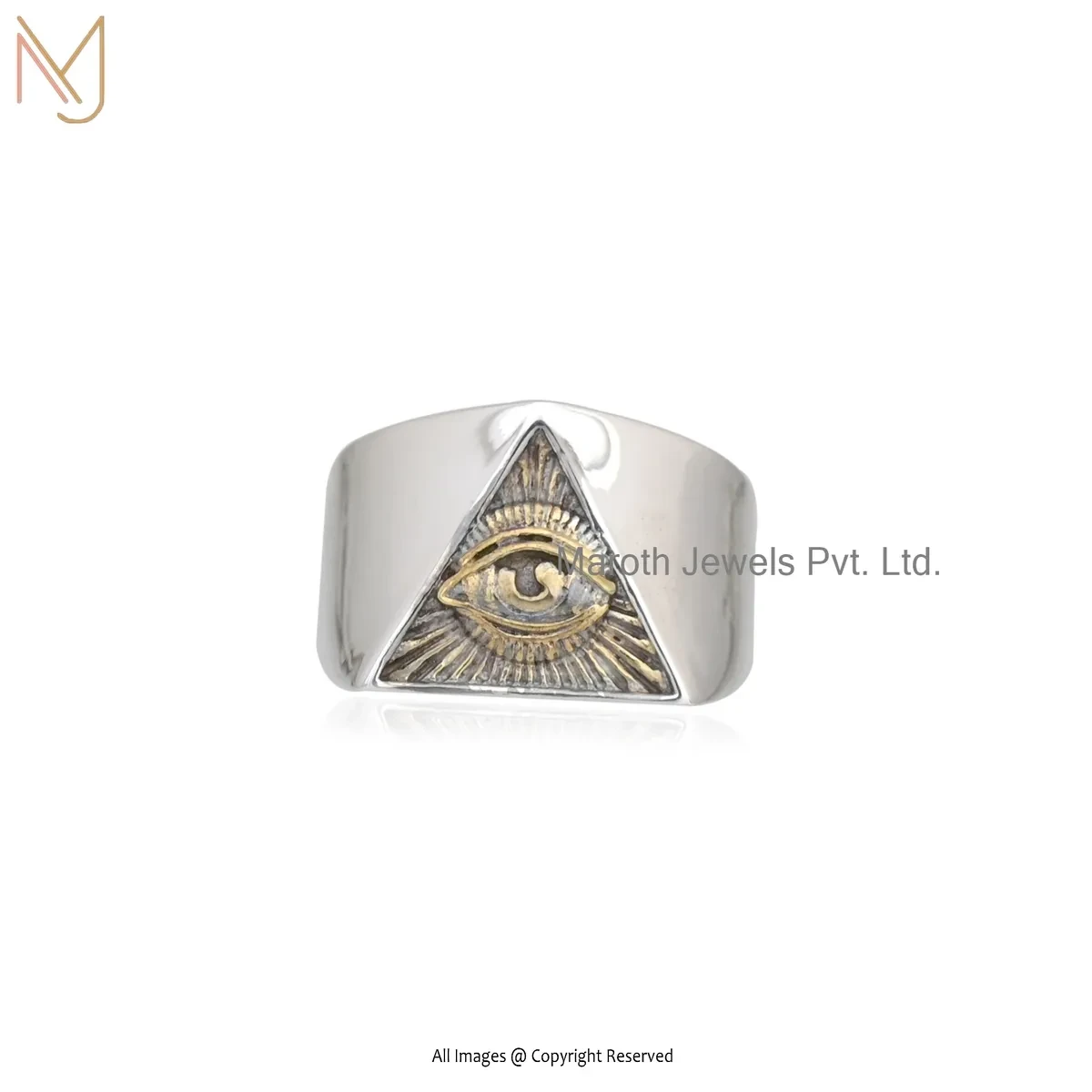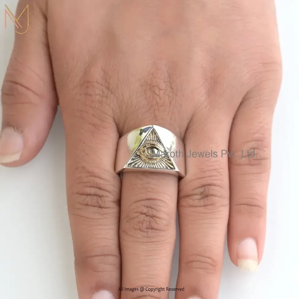 925 Silver Natural Silver Yellow Gold Plated Rhodium Triangle Eye Ring Custom Jewelry
