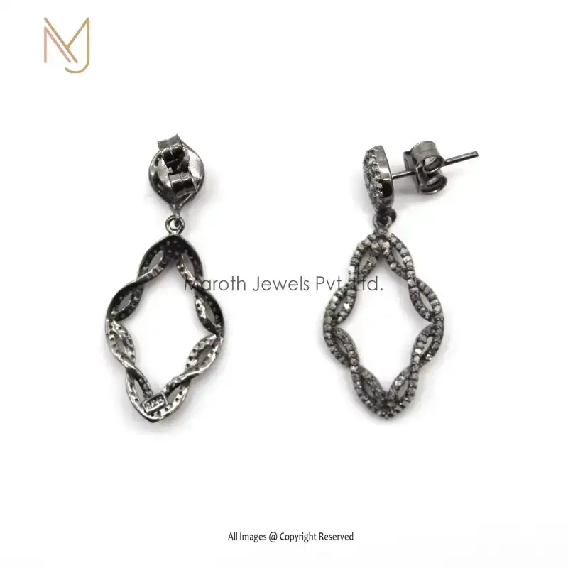 925 Silver Pave Diamond Earring For Wedding And Party Gift Custom Jewelry