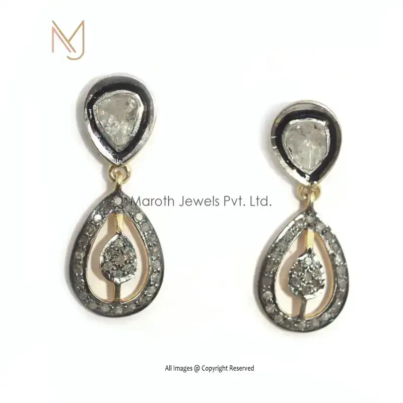 925 Silver Pave Diamond & Rose Cut Diamond Designer Drop Earrings Jewelry Manufacturer