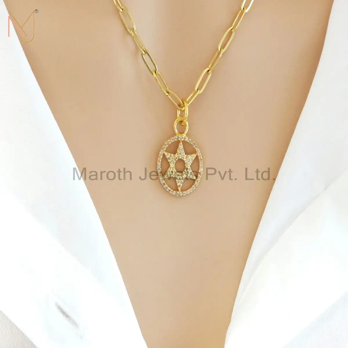 925 Silver Pave Diamond Star Of David Circle Pendant Jewelry Supplier