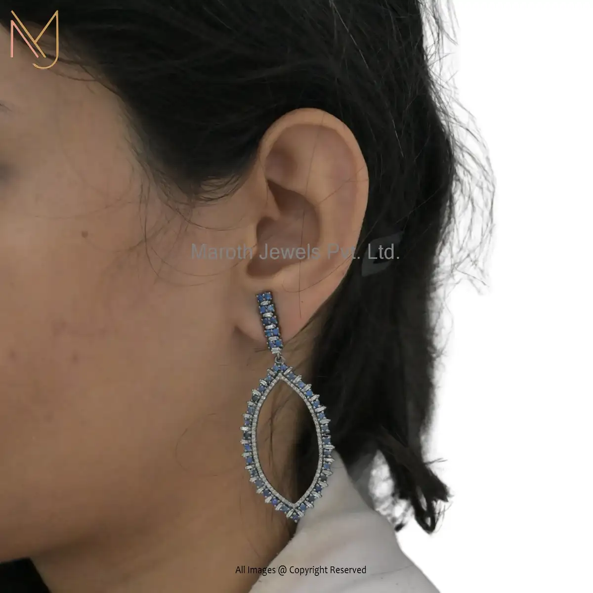 925 Silver Rhodium Blue Sapphire and Diamond Drop Earring Jeweliry Supplier