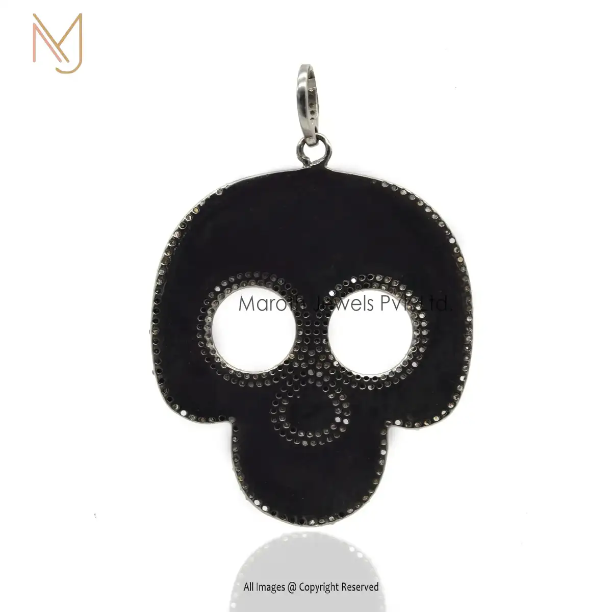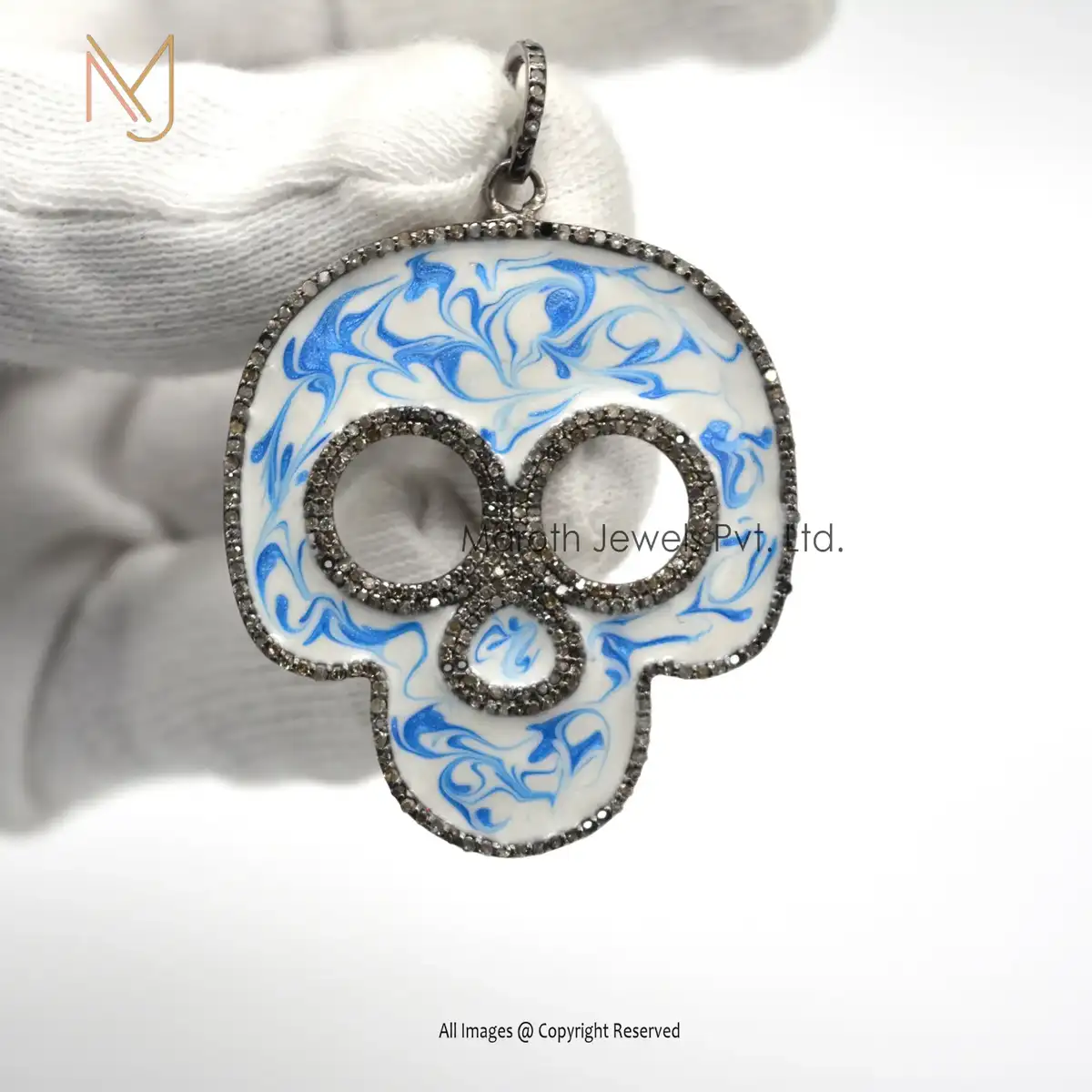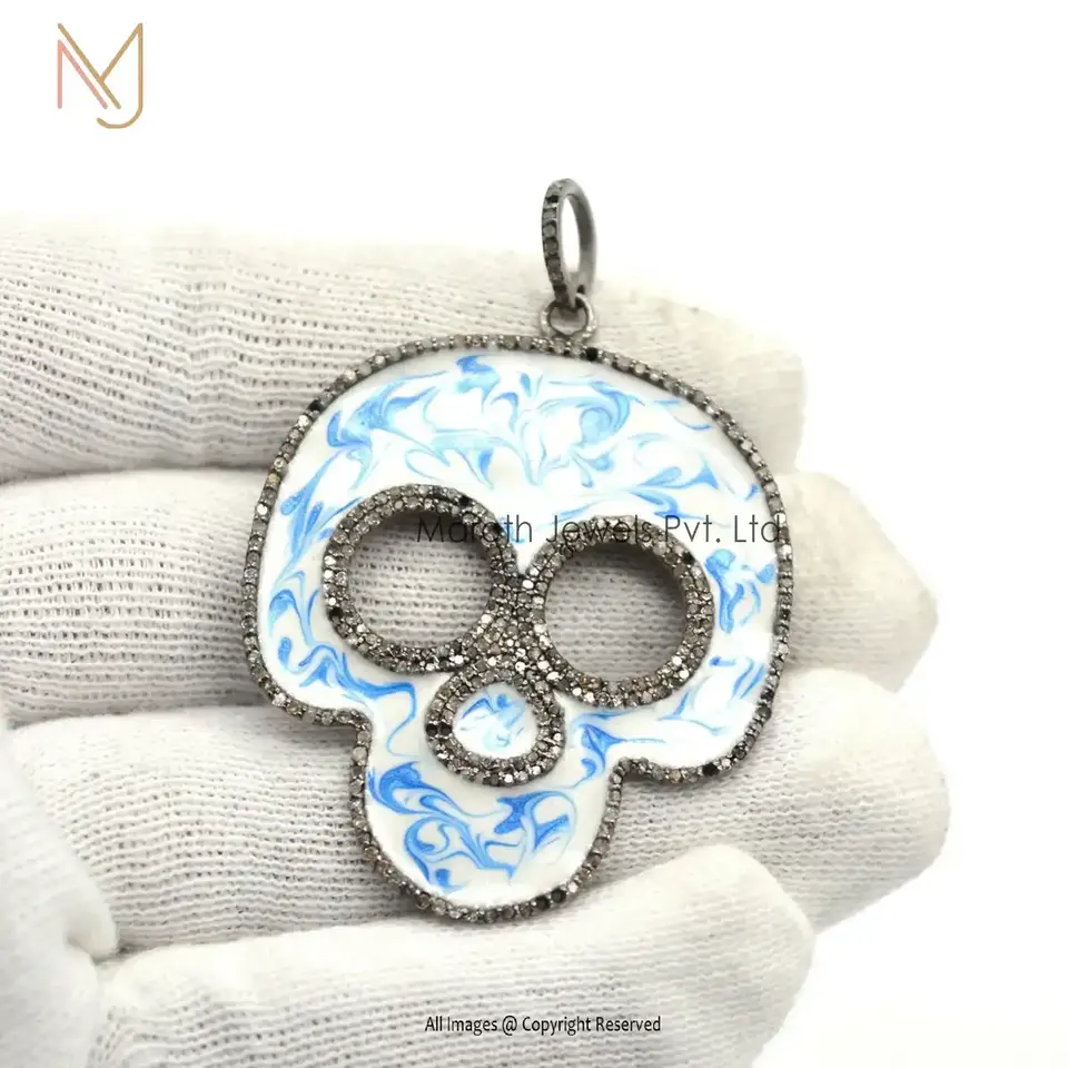 925 Silver Rhodium Blue & White Enamel Pave Diamond Skull Pendant Silver Jewelry Manufacturer