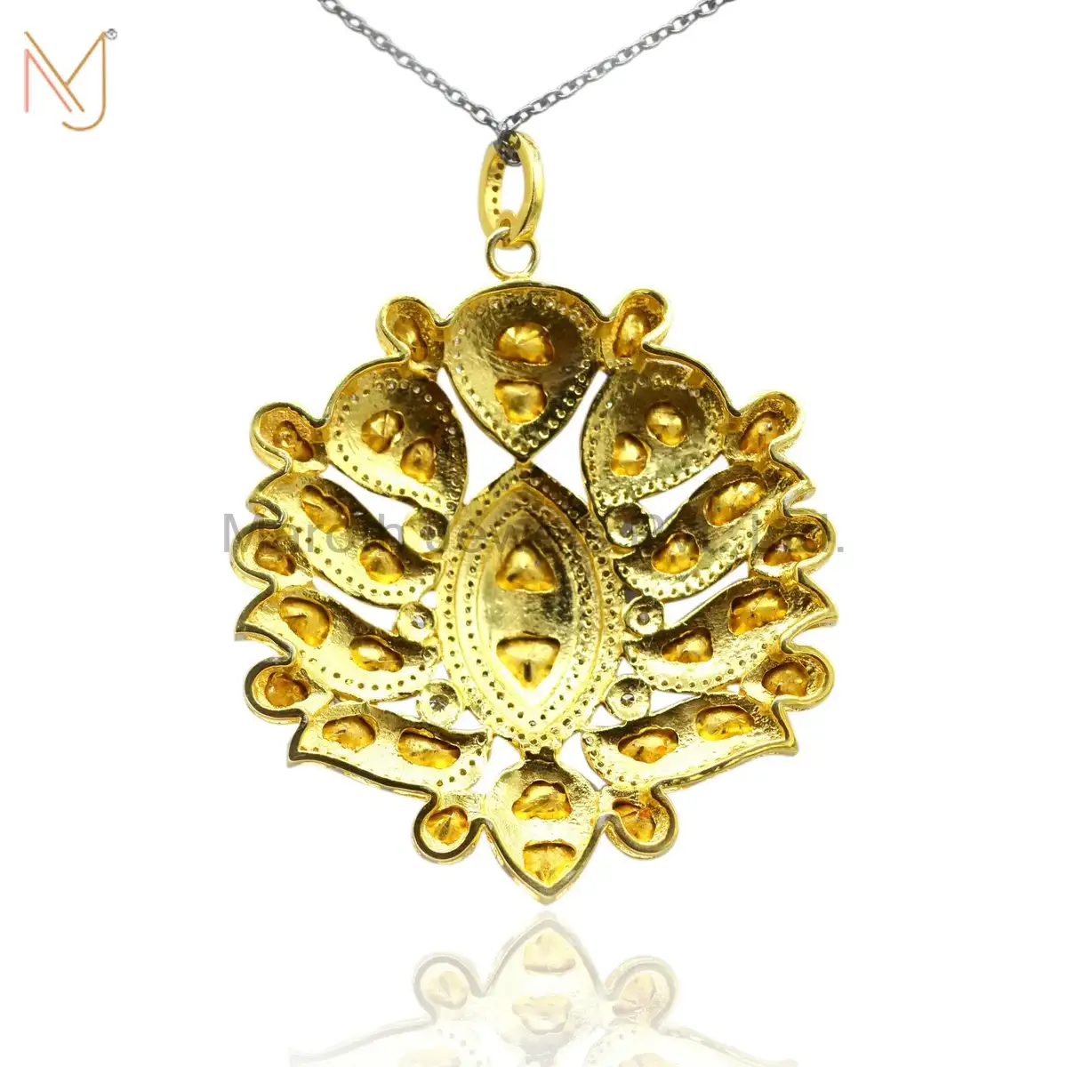 925 Silver Rhodium Designer Rose Cut Diamond Pendant Handmade Jewelry USA