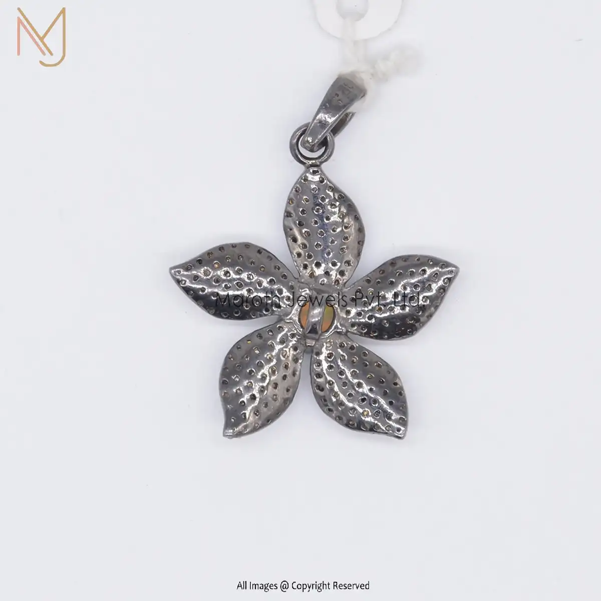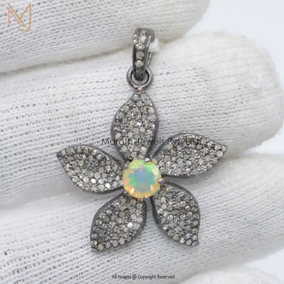 925 Silver Rhodium Pave Diamond And Opal Gemstone Leaf Flower Pendant Jewelry Manufacturer