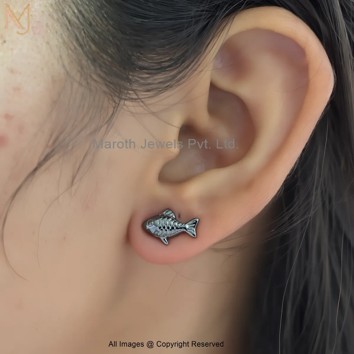 925 Silver Rhodium Plated Fish Stud Earring Custom Jewelry