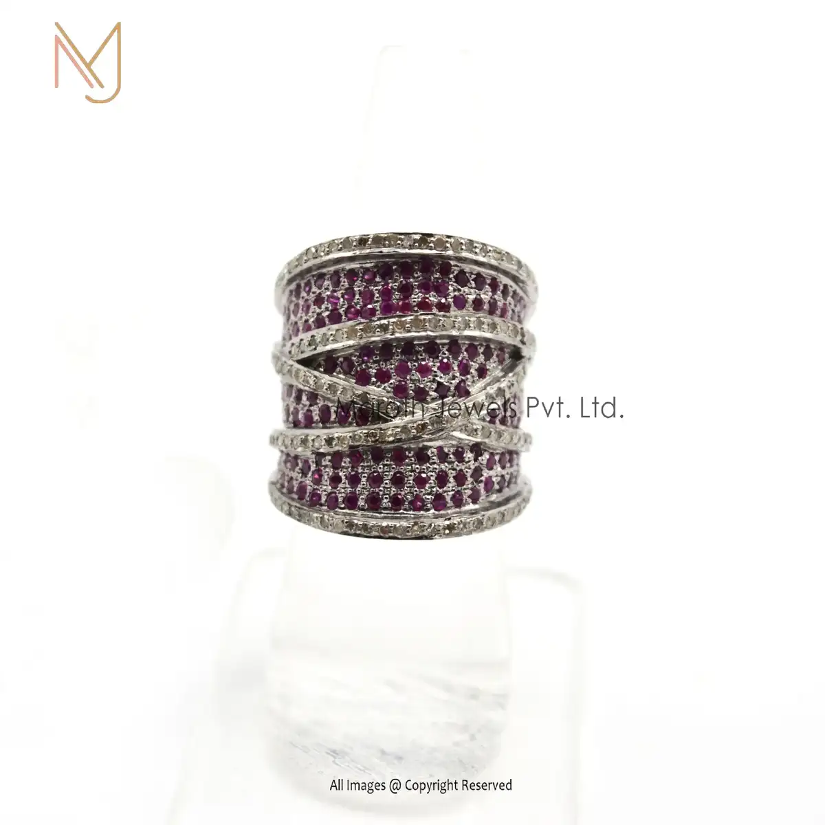 925 Silver Rhodium Plated Pave Diamond Ruby Gemstone Ring Jewelry Manufacturer