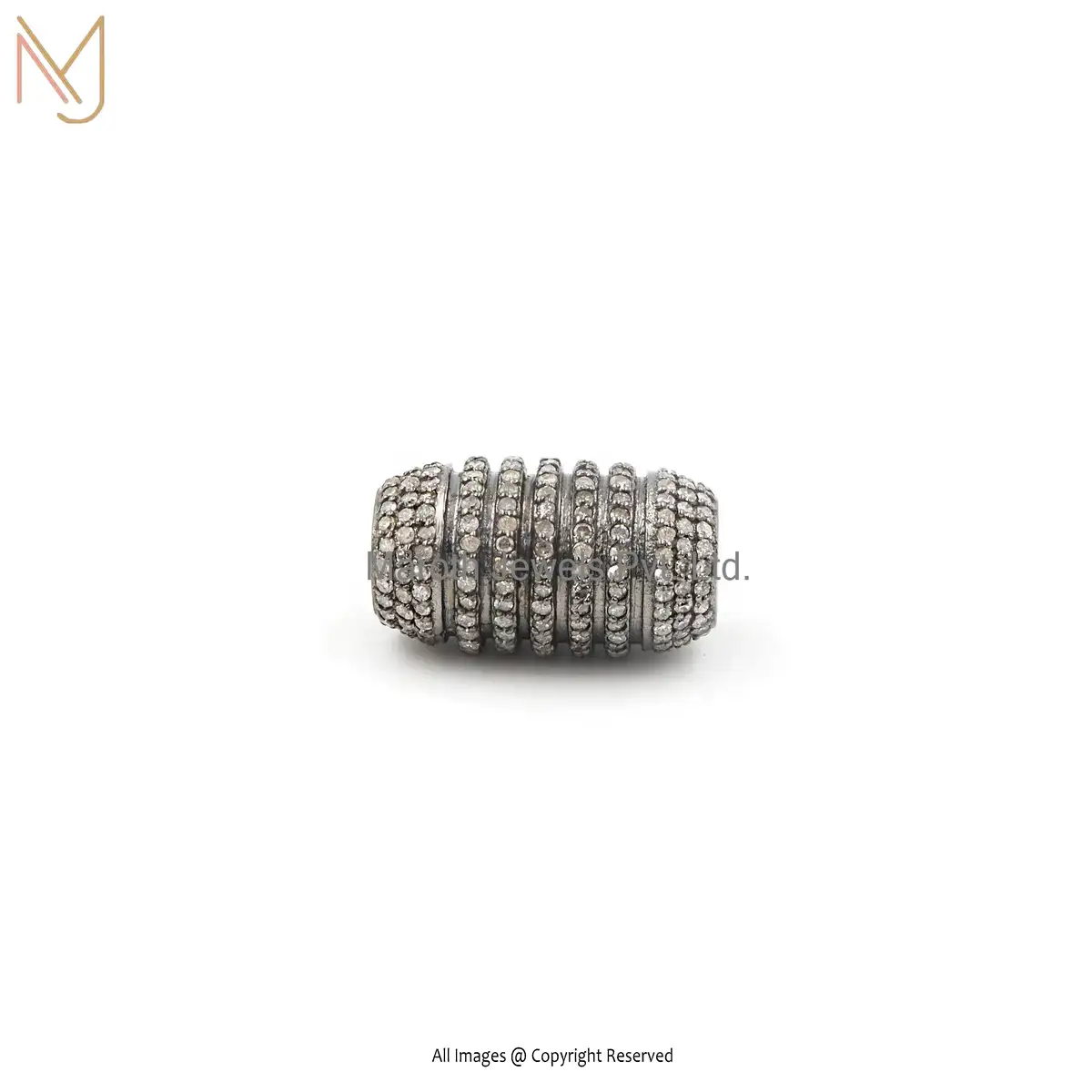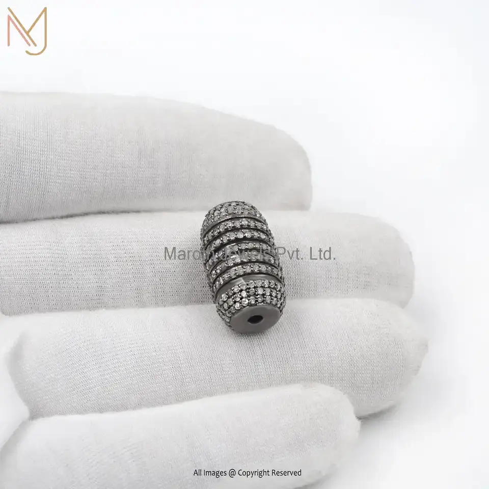 925 Silver Gray Rhodium Plated Pave Diamond Beads Finding Jewelry Manufacturer