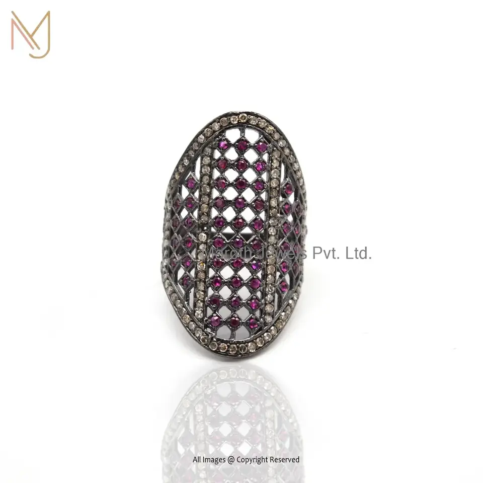 925 Silver Rhodium Plated Pave Diamond Blue Sapphire Gemstone Designer Ring USA
