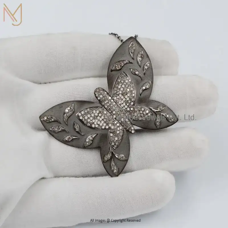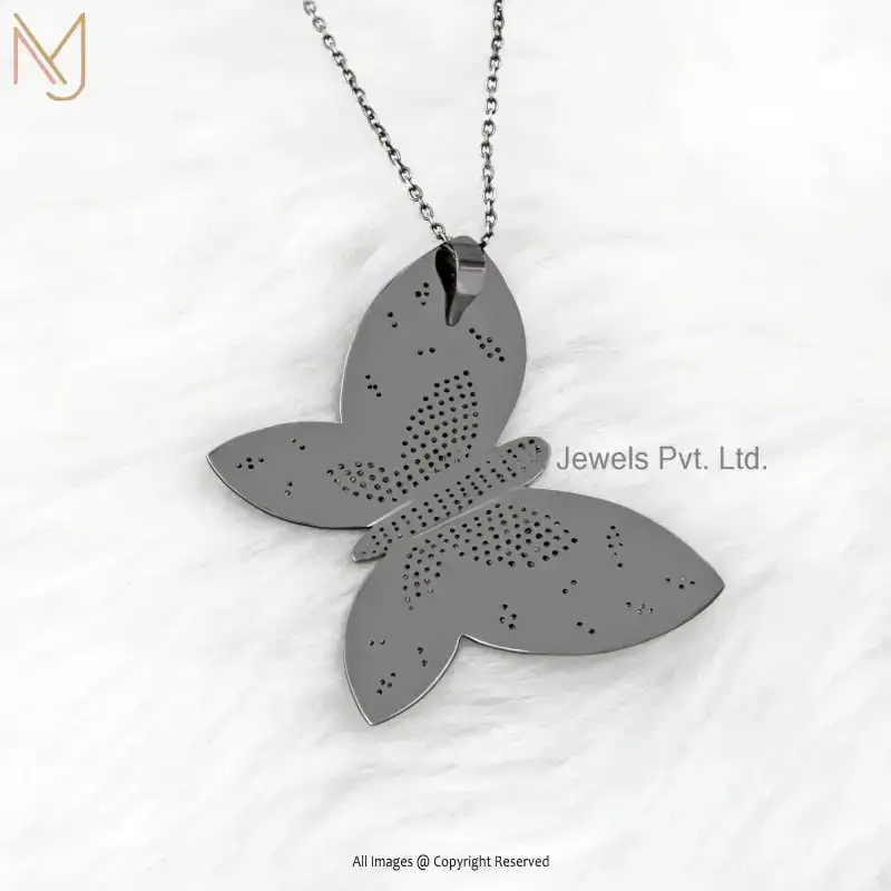925 Silver Rhodium Plated Pave Diamond Butterfly Pendant Jewelry Supplier