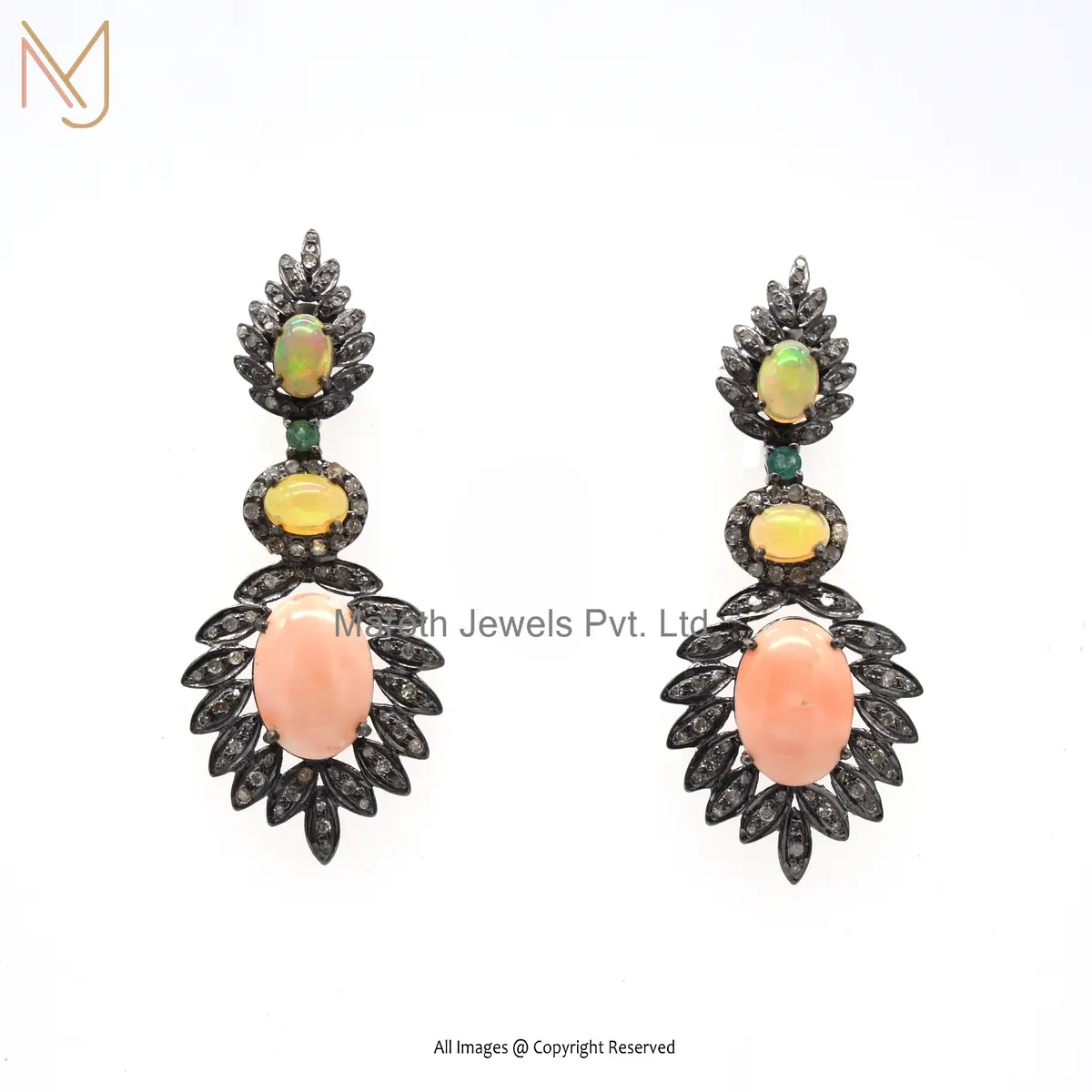 925 Silver Rhodium Plated Pave Diamond , Emerald , Opal Gemstone Dangle Earring Custom Jewelry