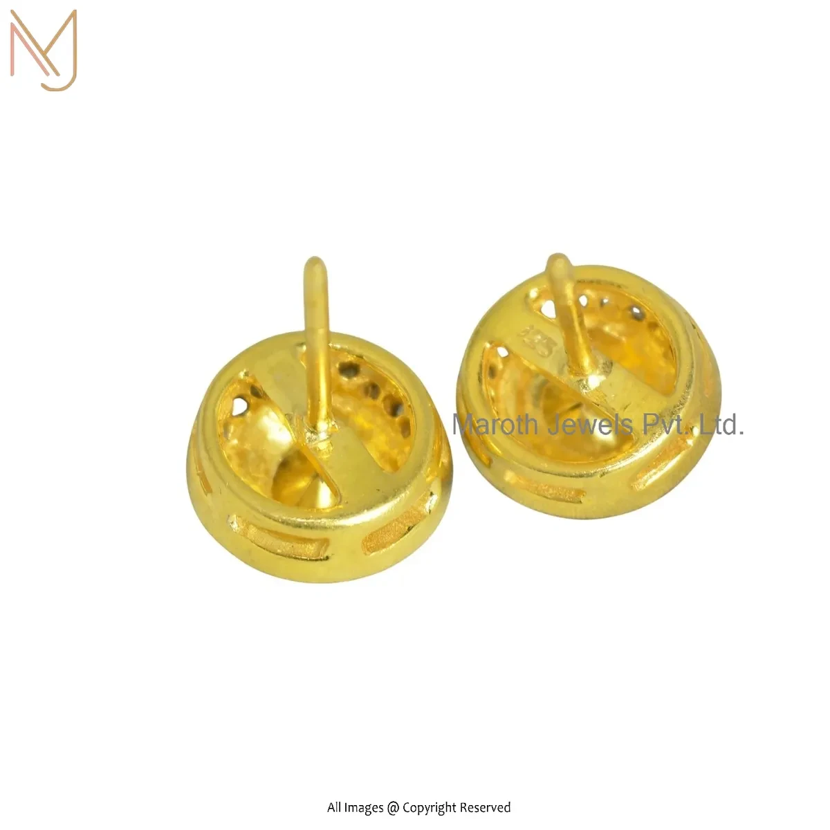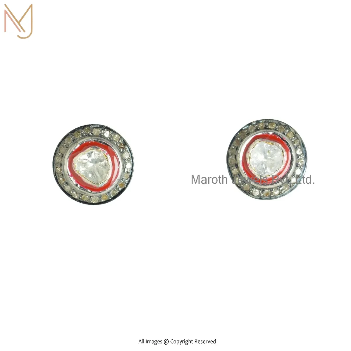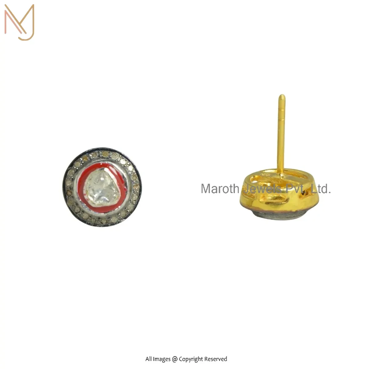 925 Silver Rhodium Yellow Gold Plated Pave Diamond And Red Enamel Rose Cut Diamond Stud Earring Jewelry Supplier