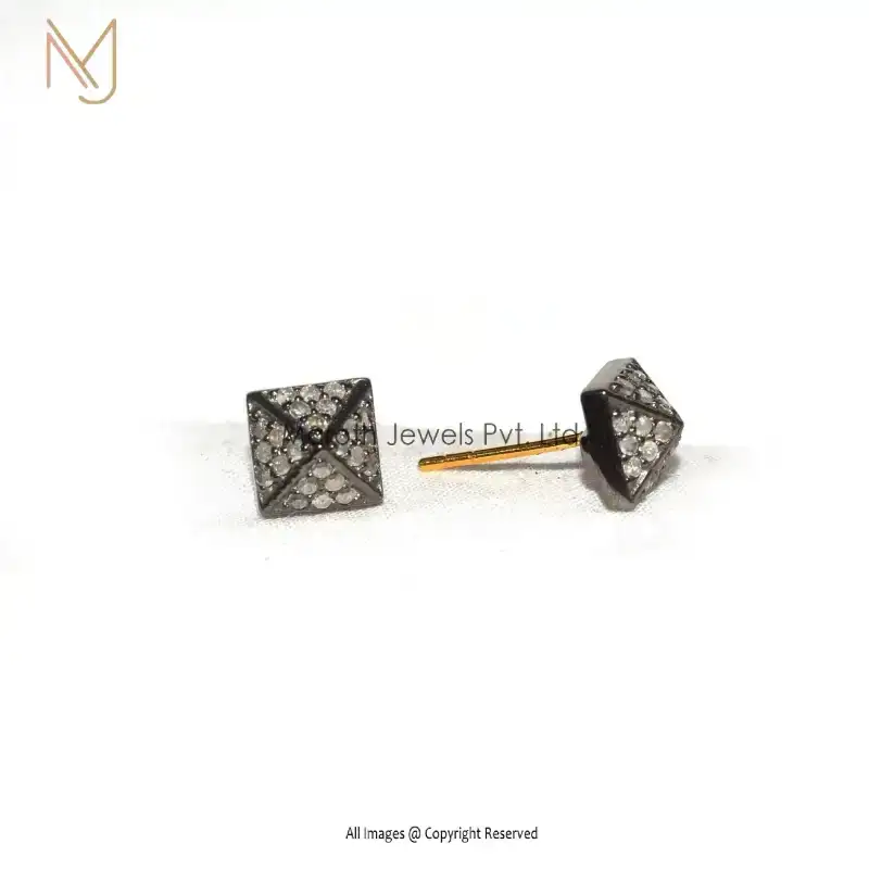 925 Silver Rhodium Yellow Gold Plated Pave Diamond Pyramid Stud Earring Manufacturer